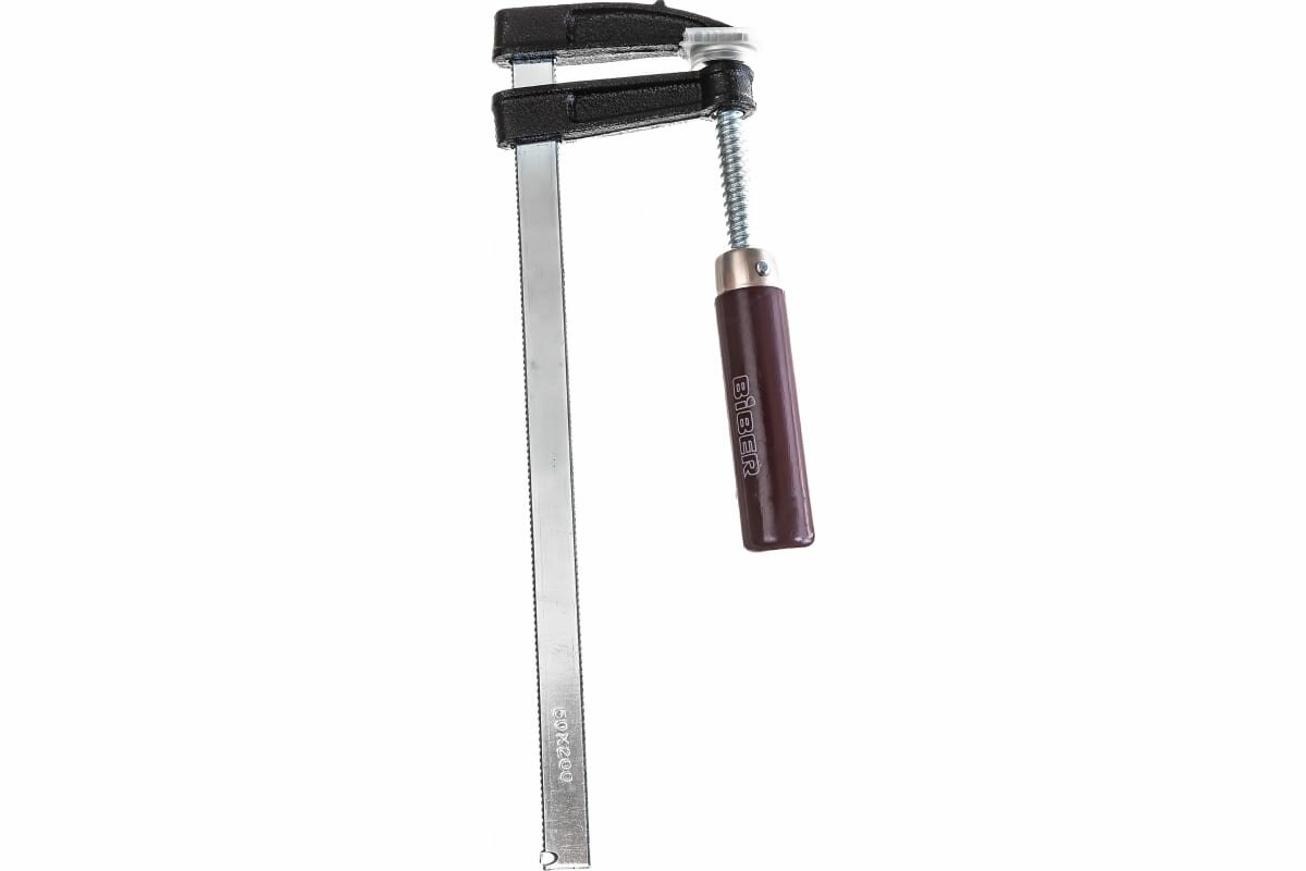 Cтрубцина Biber типа F позволяет зажимать между собой плоские детали или закреплять их на верстаке. Она имеет никелированную направляющую и деревянную ручку. Губки имеют большую площадь, что уменьшает вероятность повреждения тонкого пластика или металла.Размер – 200х50 мм.