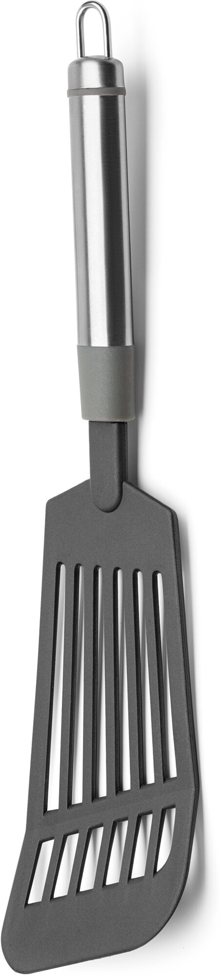 Лопатка изготовлена из пищевого пластика и выдерживает температуру до 180 °С. Лопатка предназначена для перемешивания и переворачивания продуктов в процессе жарки или тушения, а также подачи готовых блюд. Прорези на лопатке позволяют стекать излишкам масла, соуса или жидкостей. Изделие прекрасно подойдет для посуды с антипригарным, тефлоновым или керамическим покрытием. Лопатка имеет петлю для подвешивания в любое место на кухне. Предназначено для домашнего использования.