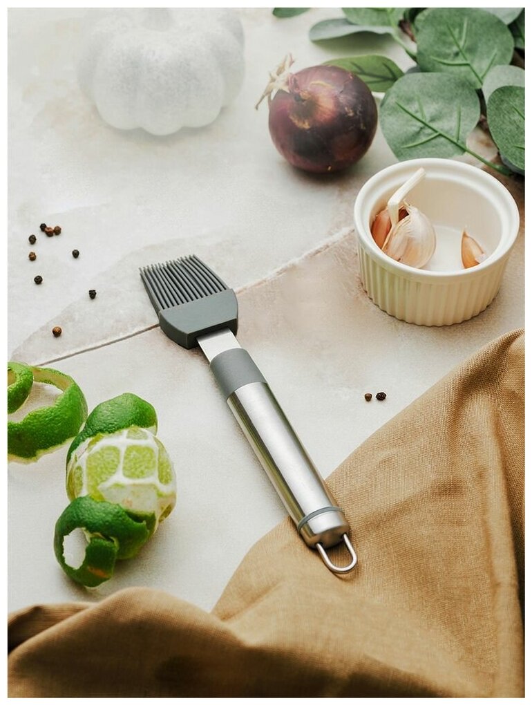 Кисть предназначена для смазывания маслом, яйцом или кремом холодных и горячих блюд, для смазывания сковород, противней и другой посуды. Кисть прекрасно подойдет для нанесения крема, глазури или шоколада на выпечку и кондитерские изделия. Рабочая часть кисли выполнена из силикона - современного и комфортного материала, который выдерживает высокие температуры до 220 °С, хорошо моется и не царапает антипригарное, тефлоновое, керамическое покрытие посуды. Изделие имеет петлю для подвешивания в любое место на кухне. Предназначено для домашнего использования.