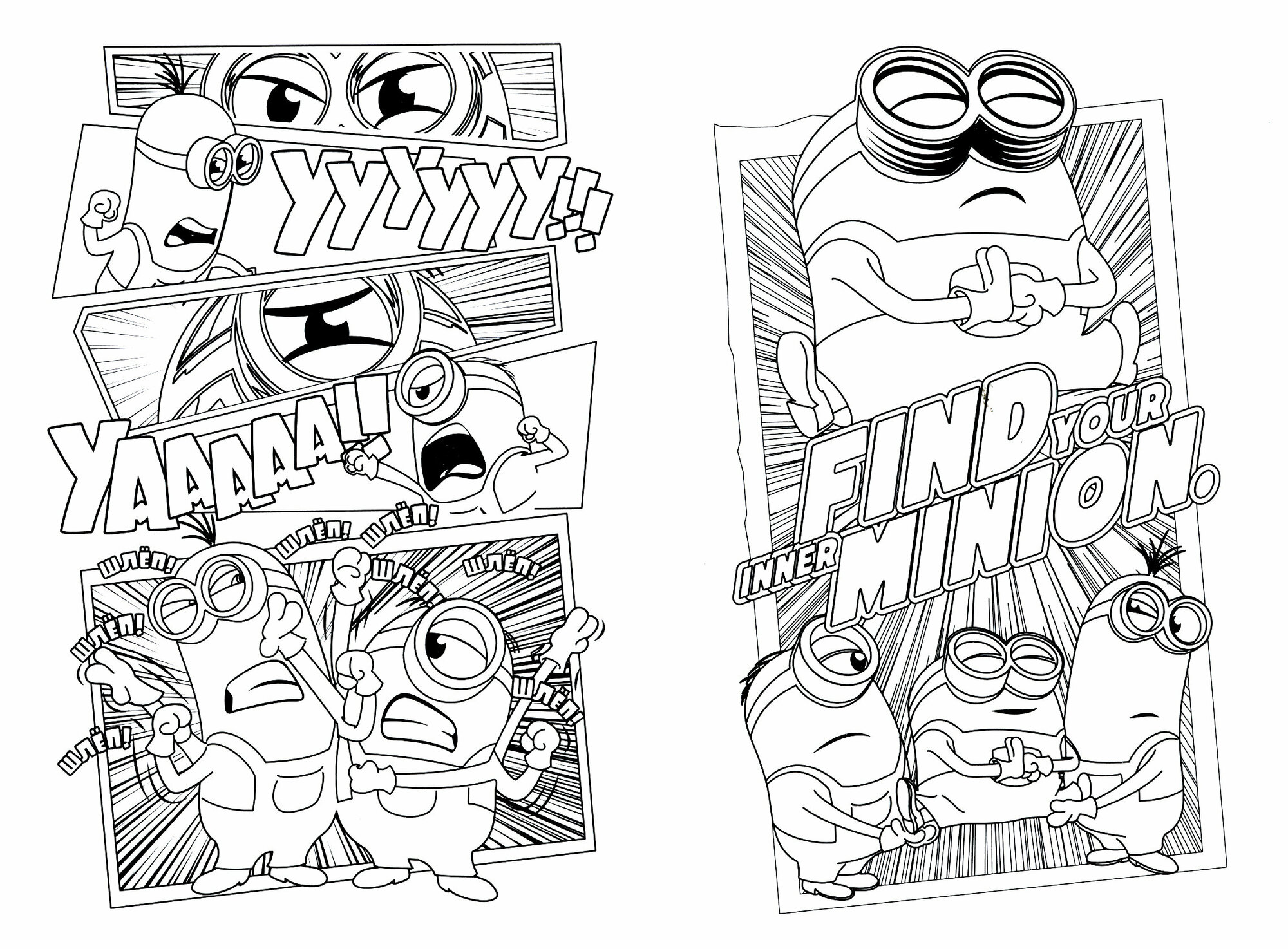 Что может быть лучше Миньонов? Конечно же, много Миньонов! Скорее открывай раскраску, бери фломастеры и отправляйся в увлекательное путешествие с командой весёлых, добрых и озорных Миньонов! Тебя ждёт радость, веселье, а также незабываемые приключения!