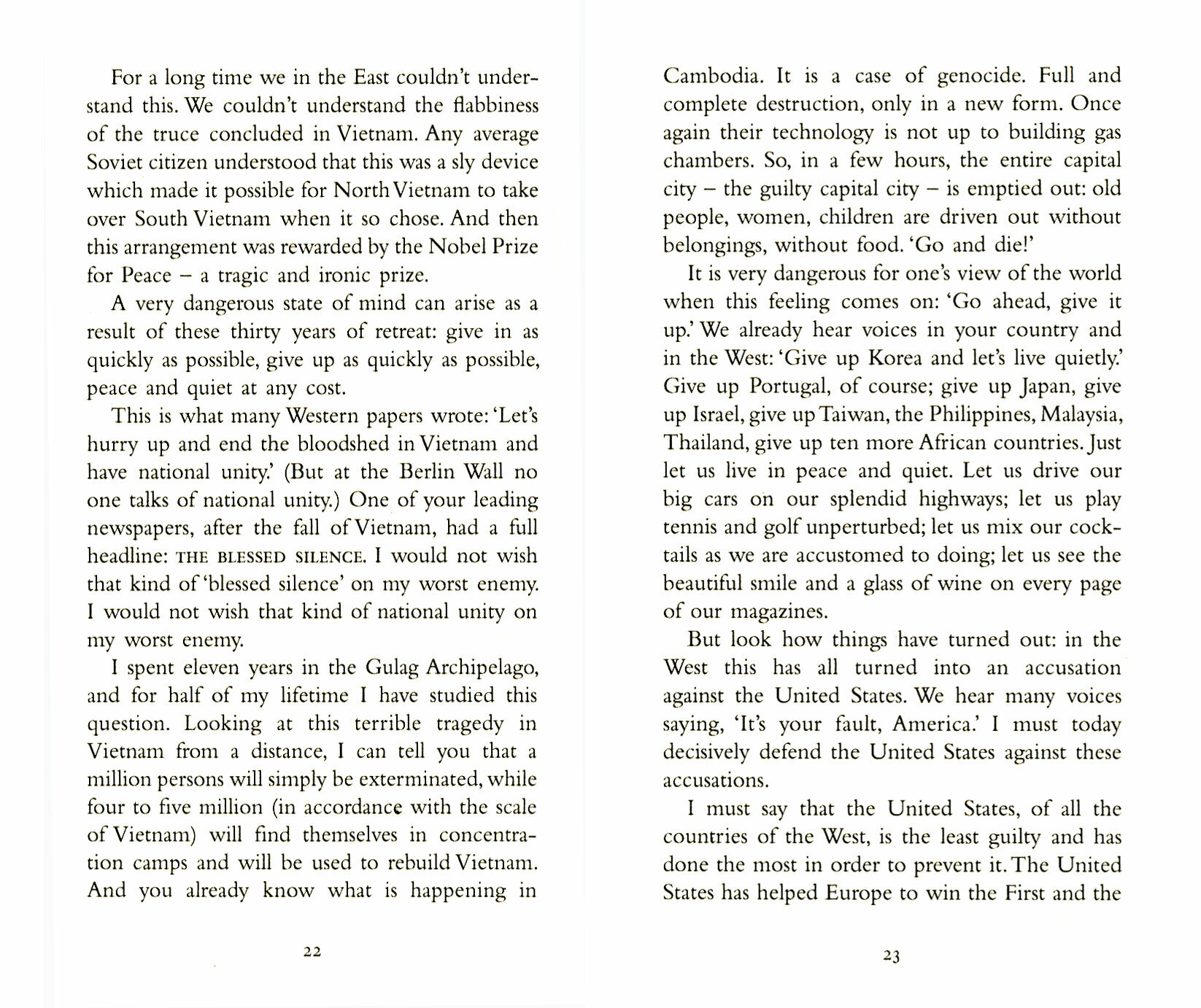 Solzhenitsyn's polemical speeches - a primer for understanding the moral, political vision of the Nobel prize winner