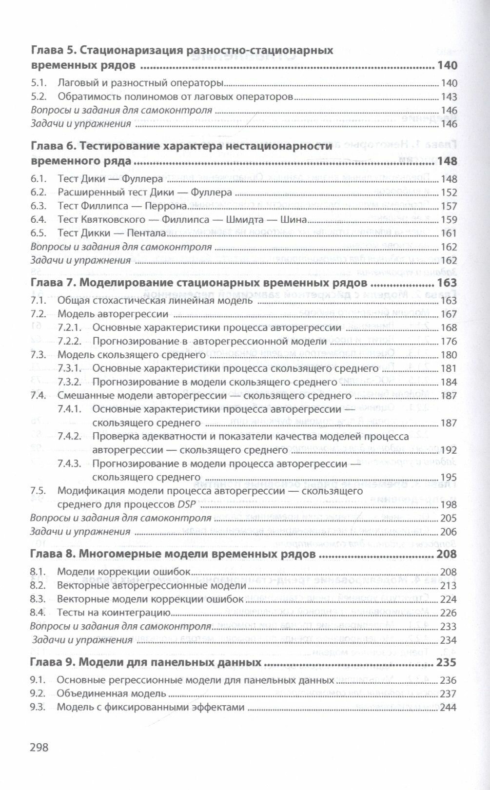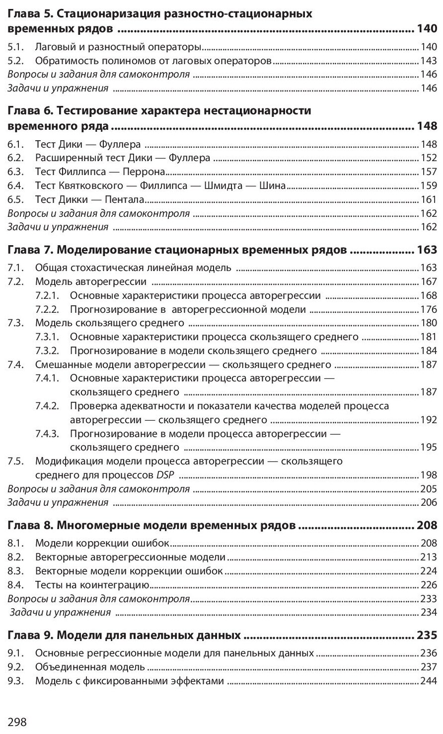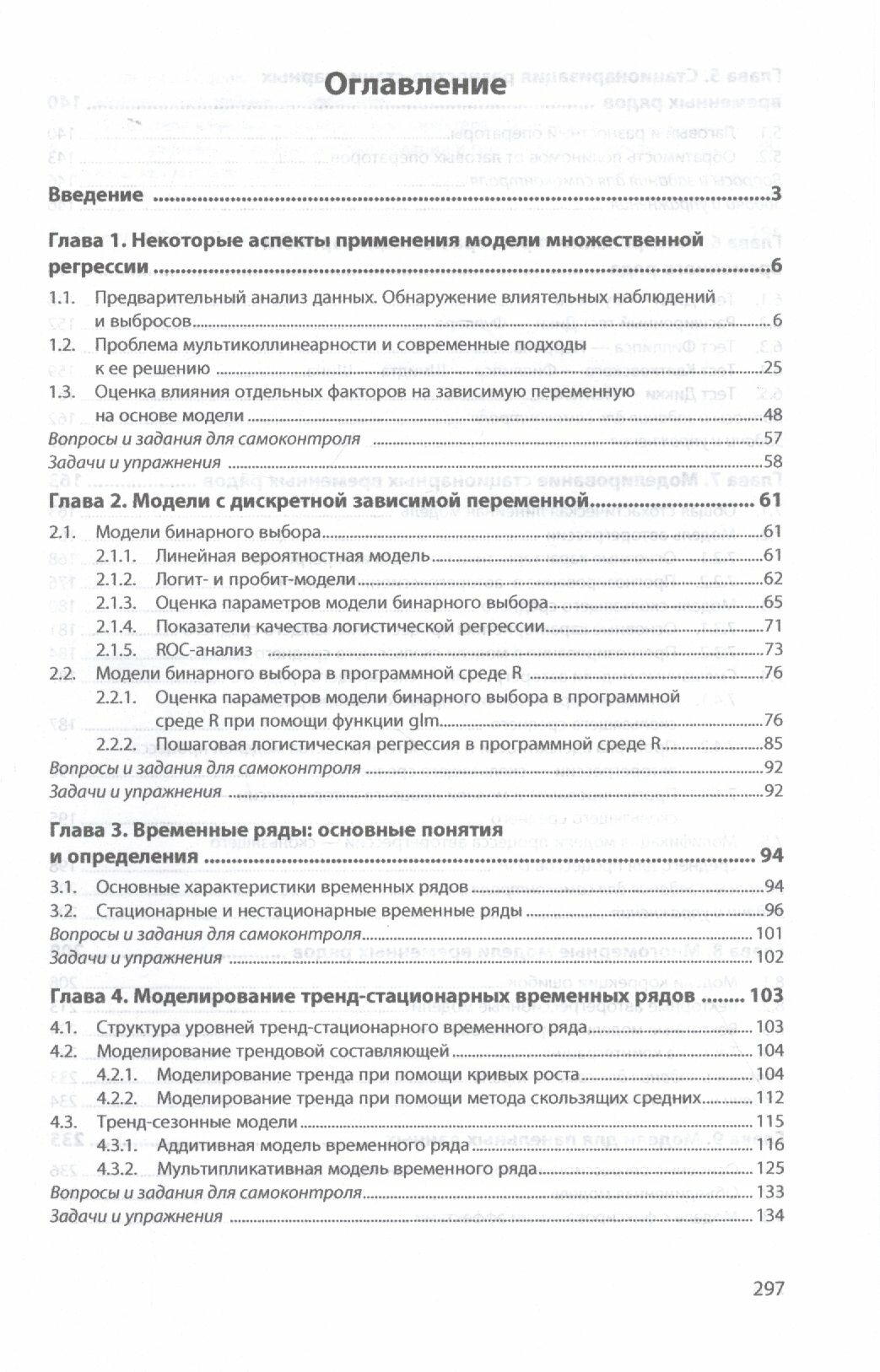 Учебник включает темы современной эконометрики, часто применяемые в экономических исследованиях. Рассматриваются некоторые аспекты моделей множественной регрессии, связанные с проблемой мультиколлинеарности, модели с дискретной зависимой переменной, включая методы их оценивания, анализа и применения. Значительное место отводится анализу моделей одномерных и многомерных временных рядов. Рассмотрены современные представления о детерминированном и стохастическом характере тренда. Изучены методы статистической идентификации типа тренда. Уделяется внимание оценке, анализу и практической реализации моделей стационарных временных рядов Бокса — Дженкинса, а также моделей многомерных временных рядов: векторных авторегрессионных моделей и векторных моделей коррекции ошибок. Включены основные эконометрические модели для панельных данных, широко применяемые в последние десятилетия, а также формальные тесты выбора моделей с учетом их иерархической структуры. В каждом разделе приводятся примеры оценки, анализа и тестирования моделей в программной среде R.