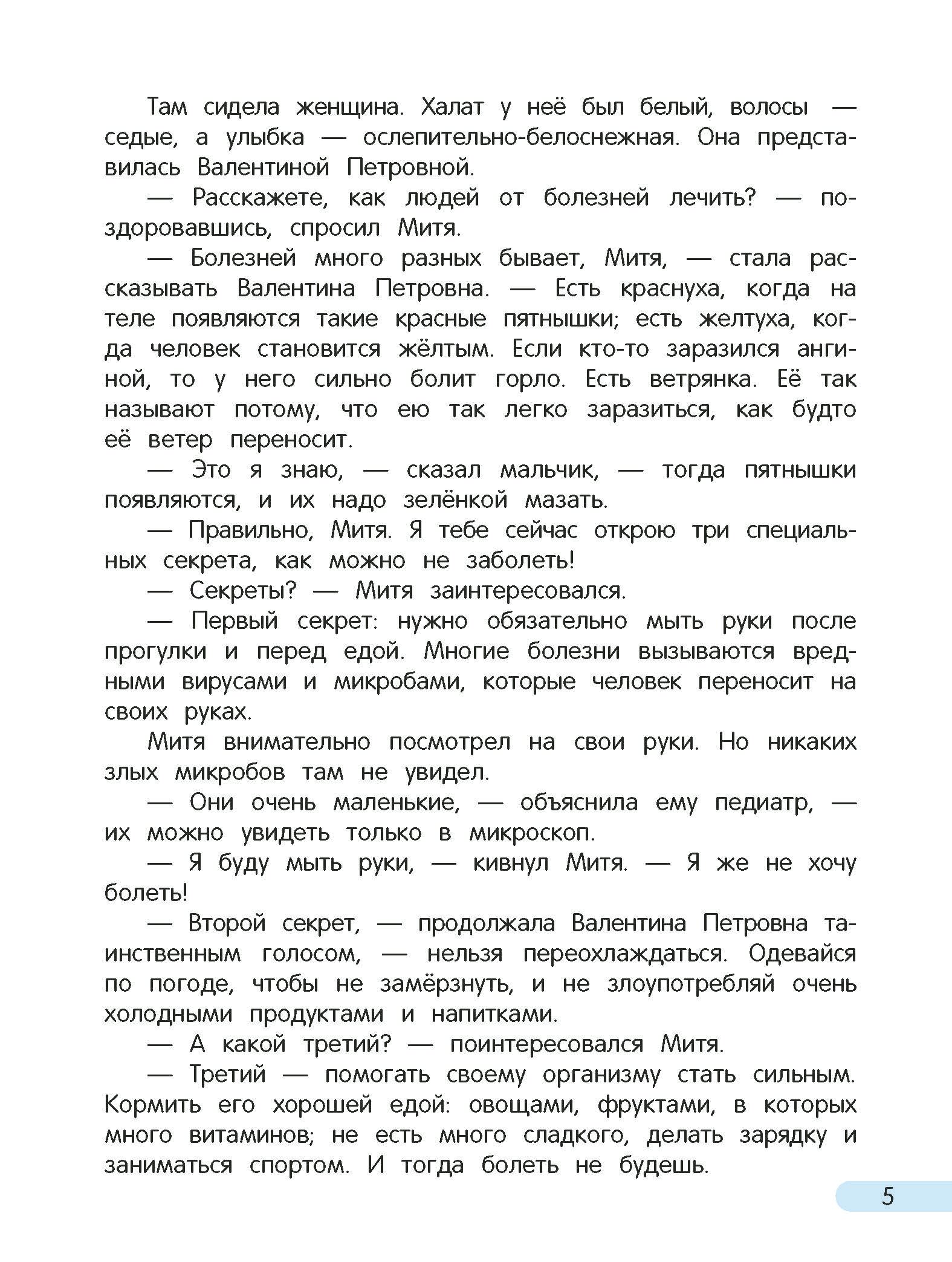 Ваш малыш не любит ходить в поликлинику и боится общаться с врачами? Эта книга поможет справиться с тревогой и преодолеть страх. Ваш ребёнок совершит увлекательное путешествие по поликлинике вместе с мальчиком Митей; узнает, какие специалисты там работают; поймёт, для чего нужны те или иные процедуры; выполнит массу интересных заданий, развивающих память, внимание, речь и фантазию.