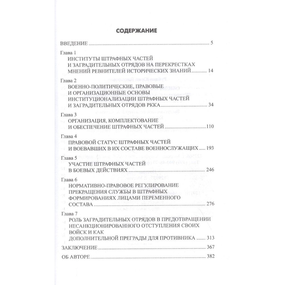 В данной монографии автор делает упор на освещении правовых аспектов создания и функционирования штрафных частей. Исследуются законодательные и нормативные акты, положенные в основу создания институтов штрафных формирований и заградотрядов, правовой статус воевавших в них военнослужащих. Показан процесс создания. комплектования, боевого и тылового обеспечения этих частей, участие в боевых действиях, подсчет потерь в штрафных подразделениях. Кроме документов приводятся также воспоминания военослужащих прошедших через штрафные части. Написано достаточно сухо - это именно монография, но качество и ценность представленного материала незаменимы для понимания этой страницы Великой Отечественной войны.