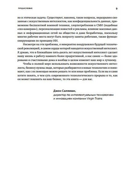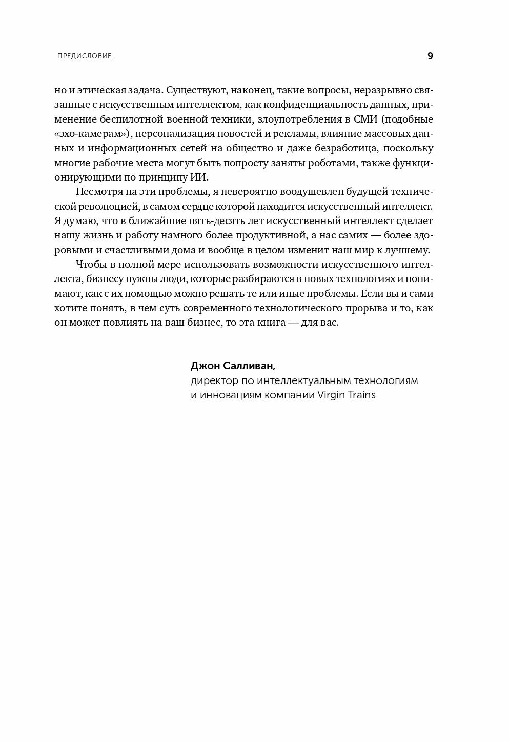 Консультант по цифровой трансформации и роботизации Эндрю Берджесс семь лет помогает компаниям внедрять ИИ. В своей книге он без «воды» и сложных терминов рассматривает такие практические функции ИИ, как распознавание образов, обработку естественного языка и прогнозирование, иллюстрируя их кейсами компаний из разных отраслей. Книга будет интересна как предпринимателям, которые только задумываются о перспективах использования ИИ, так и тем, кто хочет применять его более эффективно.