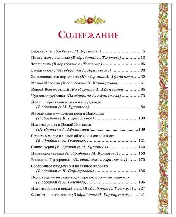 Шикарная книга, великолепные картинки, приятный текст, правильные сказки, которые учат детей правильным вещам! Одним словом правильная книга, которая должна быть в каждой детской библиотеке, каждого дома нашей страны! Очень рекомендую, как для чтения детям, с детьми, так и для самих взрослых. Не стоит забывать свои корни. Вспомните, когда Вы последний раз читали Русские скази?