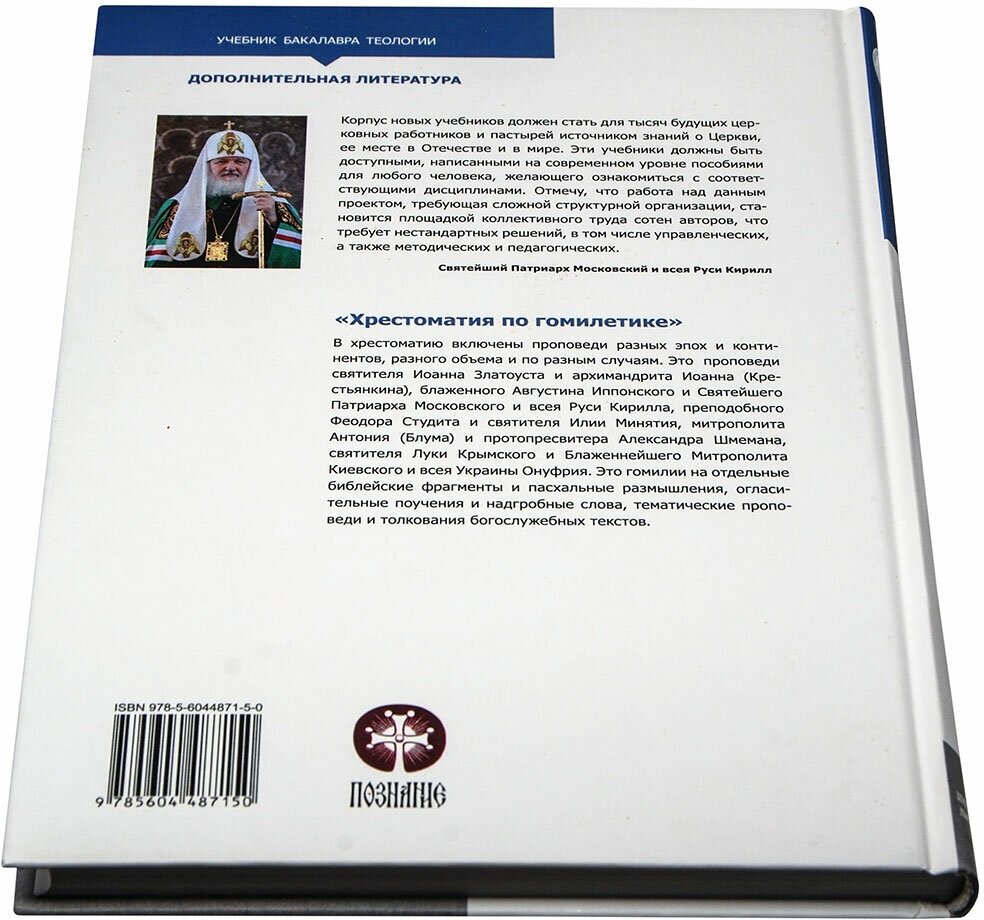 Учебник "Хрестоматия по гомилетике" является вспомогательным материалом к изданному ранее учебнику "Гомилетика" архимандрита Симеона (Томачинского) и Бурега В.В. и представляет собой сборник текстов как древних отцов и учителей Церкви, так и современных пастырей Церкви, являющихся образцами построения проповедей.