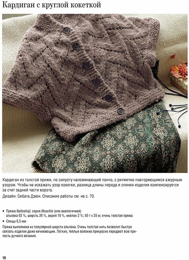 Пуловеры и кардиганы в японском стиле с объемными косами, нежными ажурами, фактурными узорами