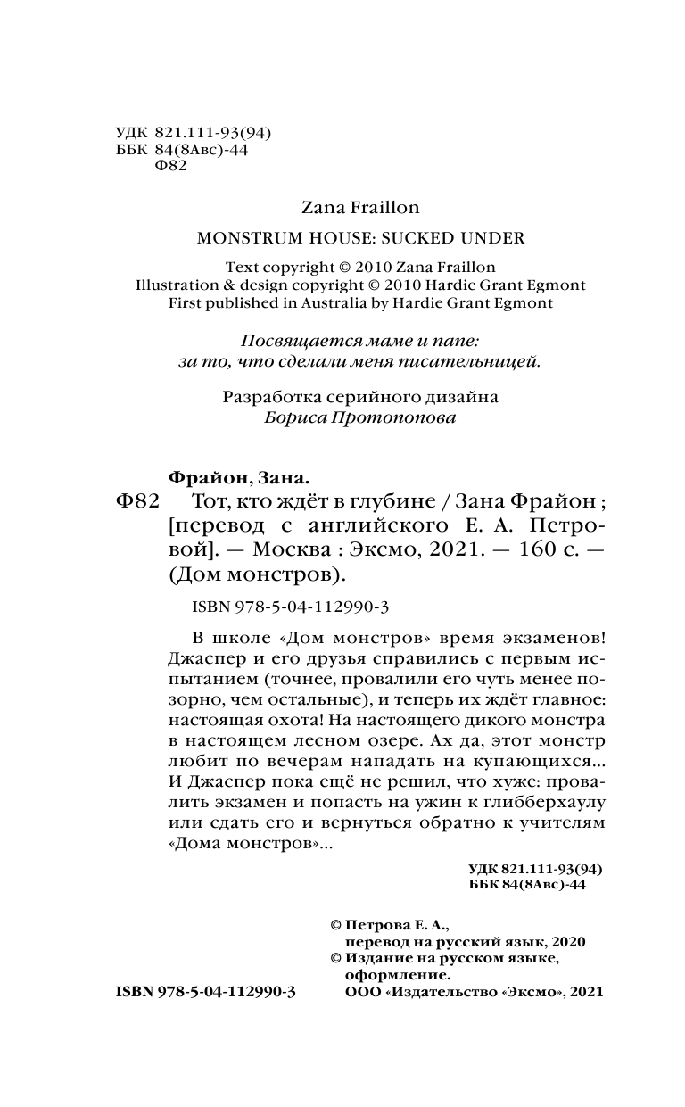 Книга: Тот кто ждёт в глубине (Фрайон Зана); ООО "Издательство "Эксмо", 2021