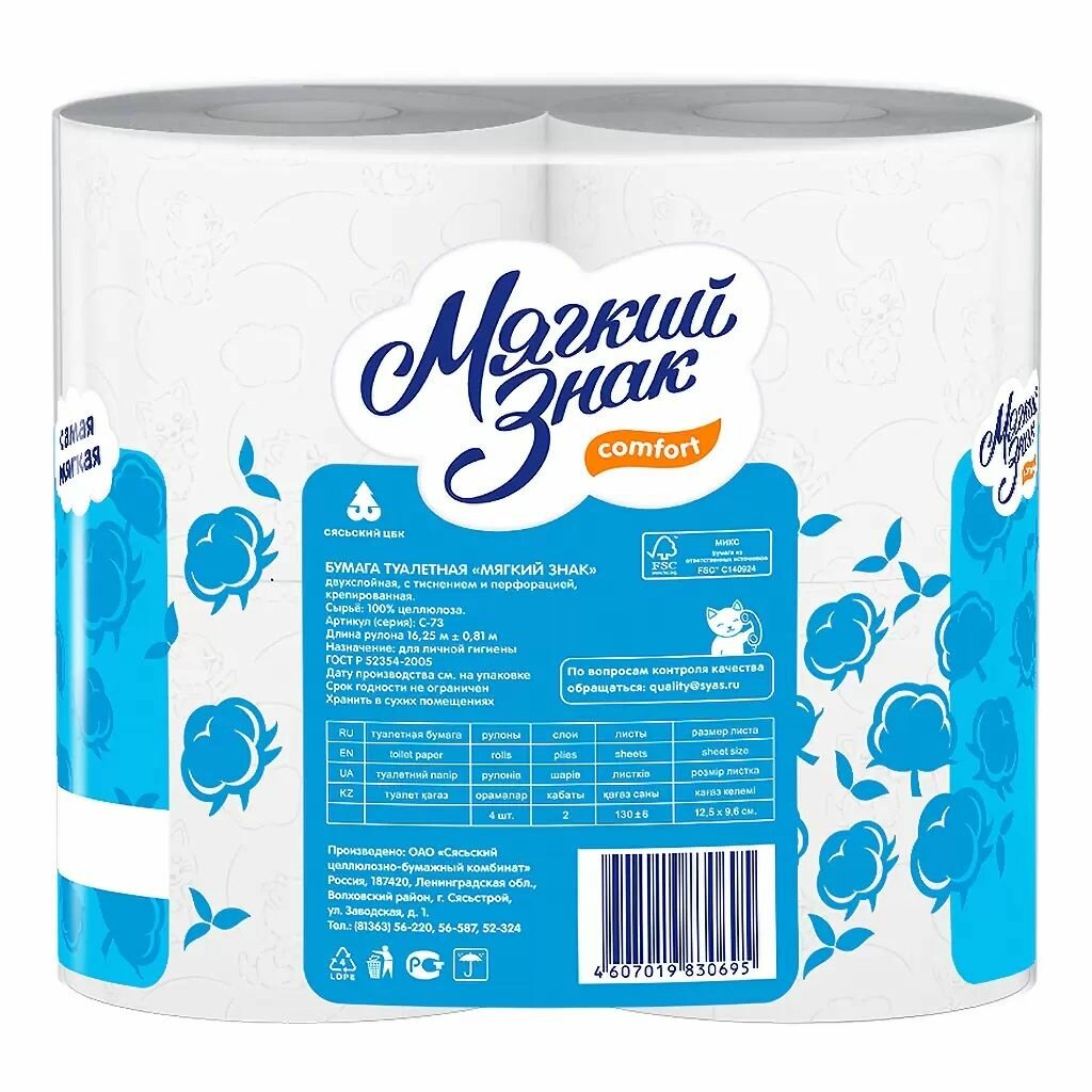 Туалетная бумага Мягкий знак 4 рулона 2 слоя Сясьский ЦБК