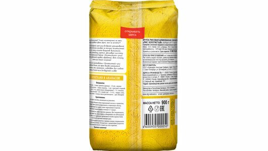| Состав | Крупа рисовая шлифованная, обработанная паром. Возможно наличие следов глютена |