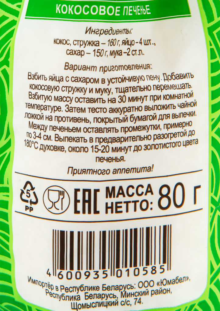 | Состав | Кокос стружкой. Возможно наличие следов глютена |