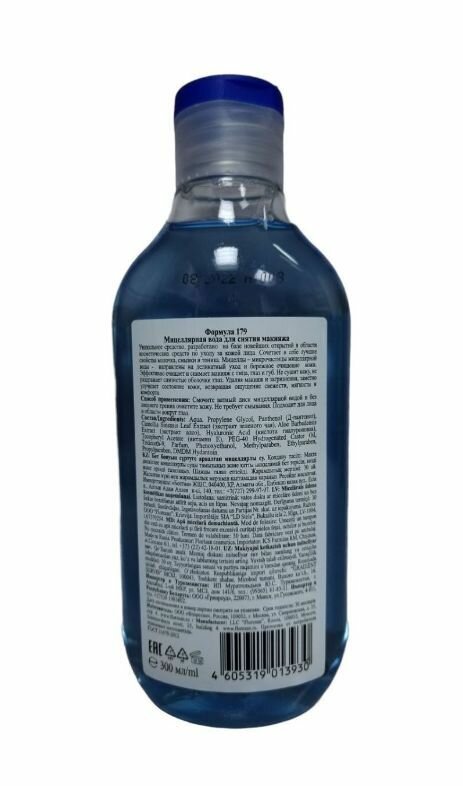 Уникальное средство, разработано на базе новейших открытий в области косметических средств по уходу за кожей лица. Сочетает в себе лучшие свойства молочка, смывки и тоника. Мицеллы - микрочастицы мицеллярной воды - направлены на деликатный уход и бережное очищение кожи. Эффективно очищает и снимает макияж с лица, глаз и губ. Не сушит кожу, не раздражает слизистые оболочки глаз. Удаляя макияж и загрязнения, заметно улучшает состояние кожи, возвращая ощущение свежести, мягкости и комфорта.Способ применения:Смочить ватный диск мицеллярной водой и без лишнего трения очистить кожу.Не требует смывания.Подходит для лица и области вокруг глаз. Характеристики: Состав: вода питьевая, пропиленгликоль, Д-пантенол, экстракт зеленого чая, экстракт алоэ, кислота гиалуроновая, витамин Е, ПЭГ-40 гидрогенизированное касторовое масло, тридецет-9, парфюмерная композиция, феноэкситанол, метилпарабен, этилпарабен, пропилпарабен, гидантоин дмдм.Объем: 300 мл.