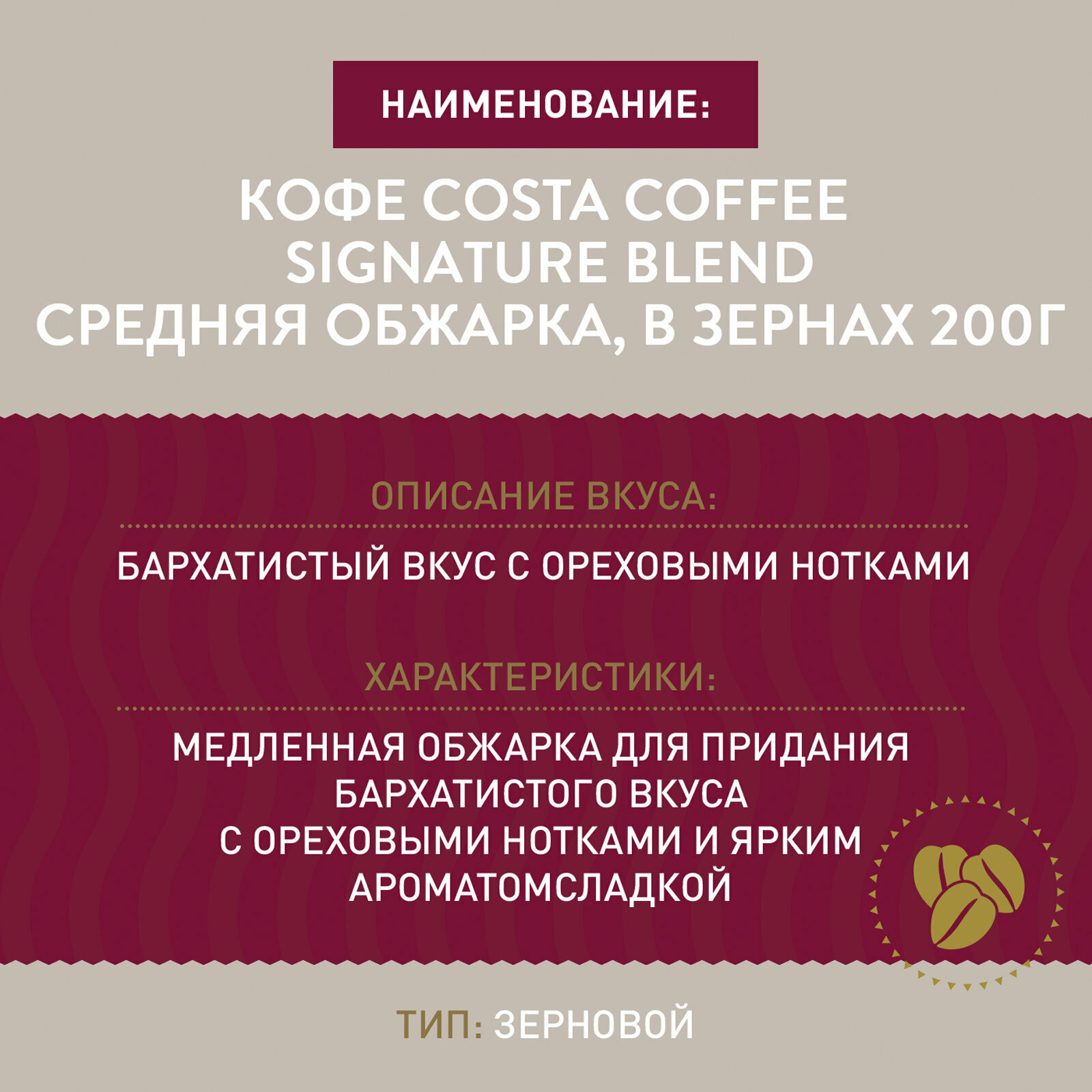 Тип товара: Кофе зерновой