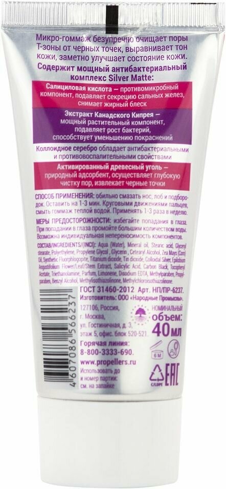 Средство от черных точек Пропеллер Micro-Gommage для очищения Т-зоны с серебром 40мл НАРОДНЫЕ ПРОМЫСЛЫ