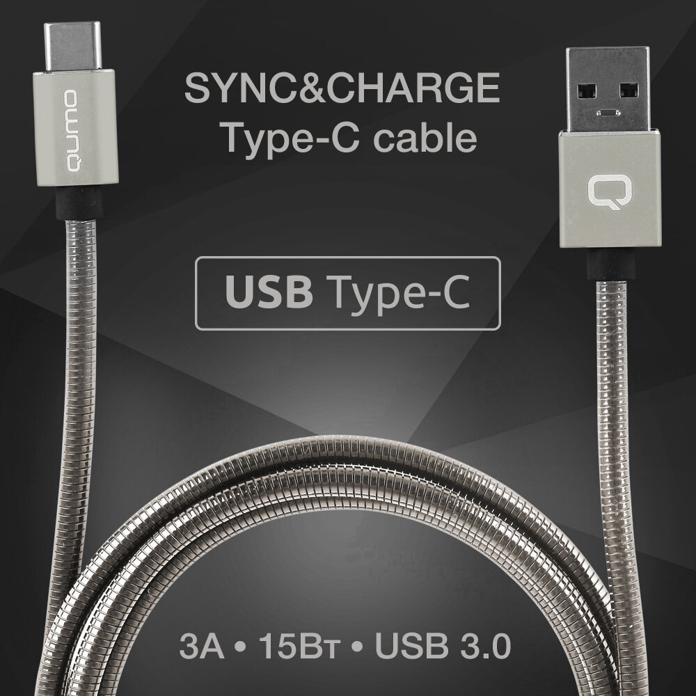 Кабель Qumo USB 3.0 - USB Type-C 3A 1м металл/пружина Серебристый СС500Sl1m