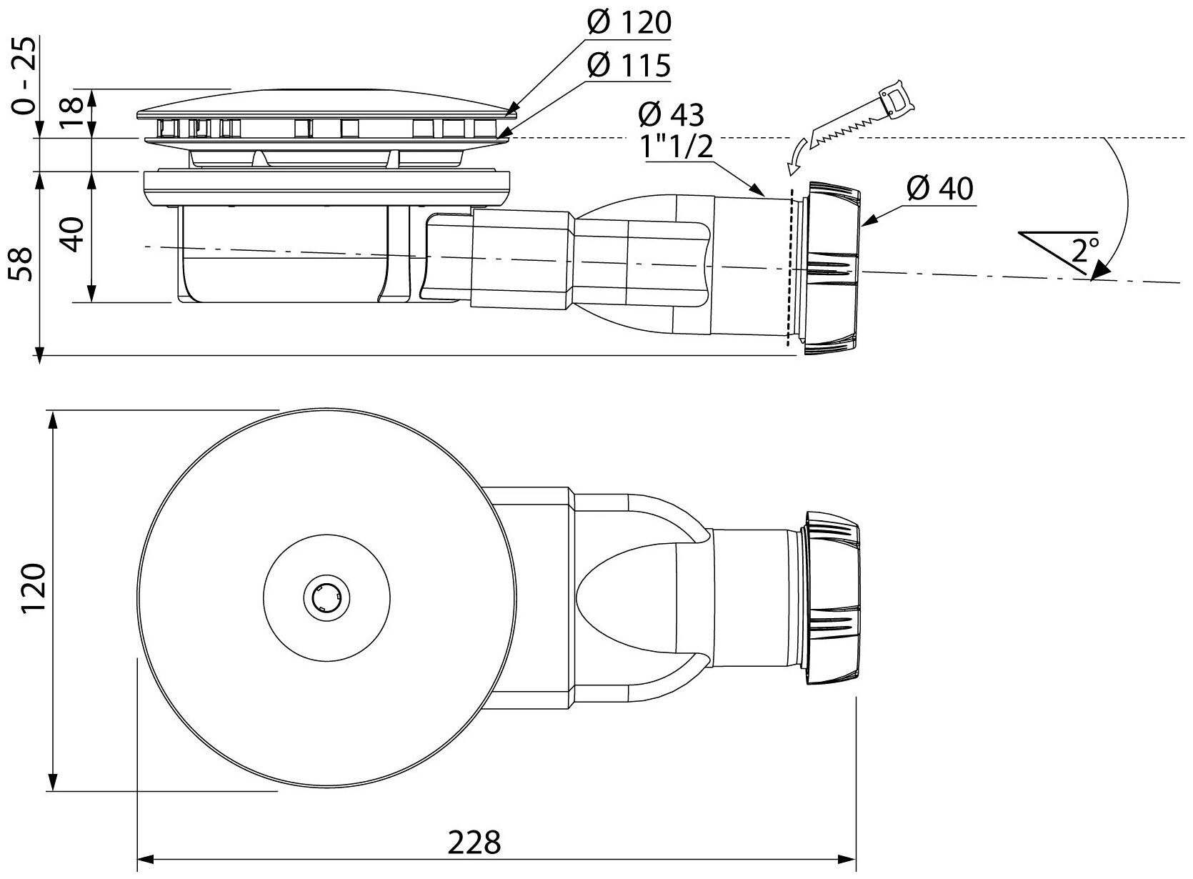 | Диаметр выпуска (отверстия для слива) | 40/43 |