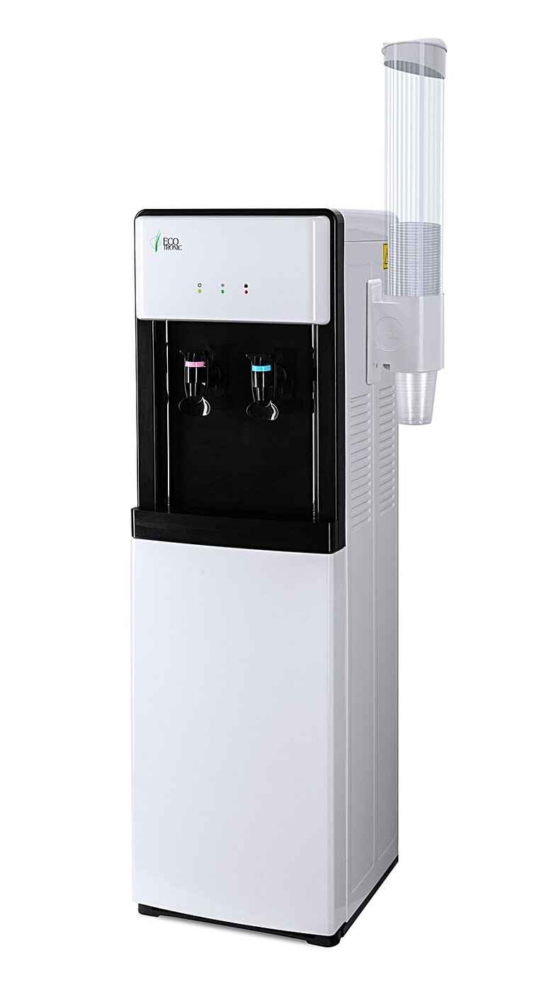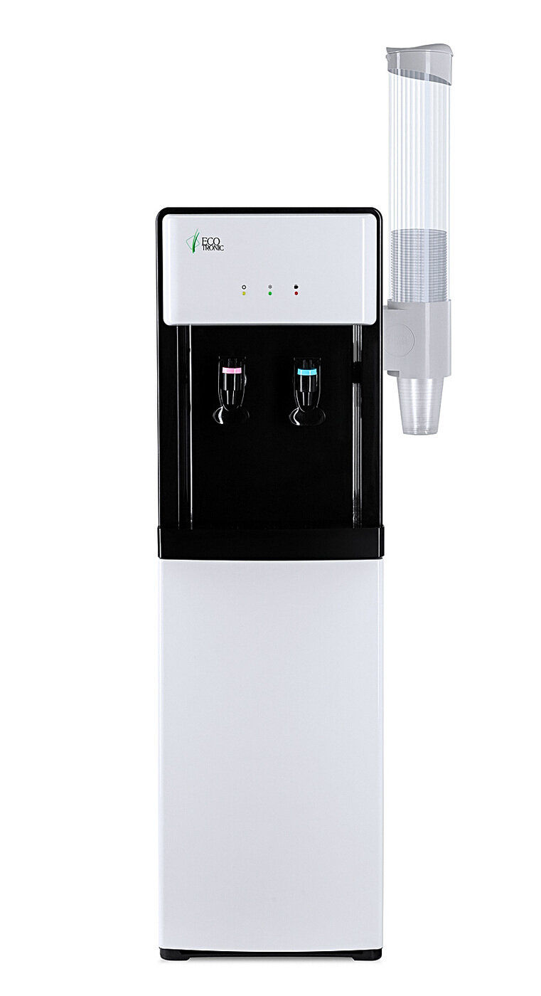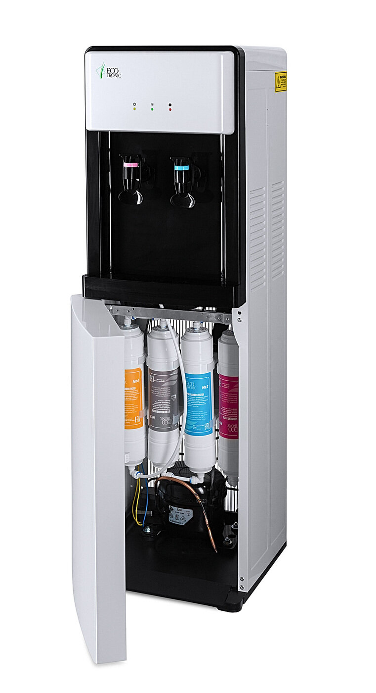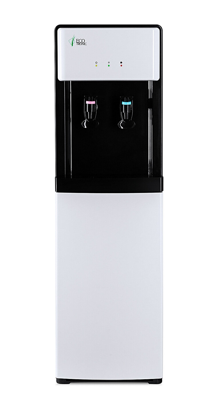Пурифайер для воды Ecotronic (Экотроник) – это напольный аппарат с 4-х ступенчатой UF фильтрацией воды, а также укомплектован увеличенным баком горячей воды объемом 3,9 литра. Единовременно можно получить 2,5 литра воды температурой 90-92 °С, затем в течение 20 минут происходит нагрев. Данная модель имеет стильный вид, корпус белый с черной вставкой в зоне подачи воды.