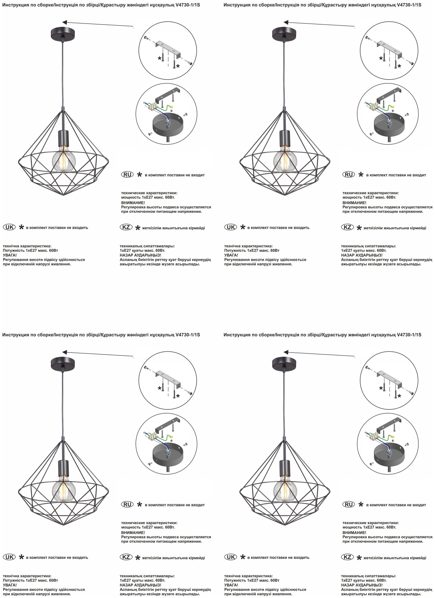 | Мощность лампы | 60Вт |