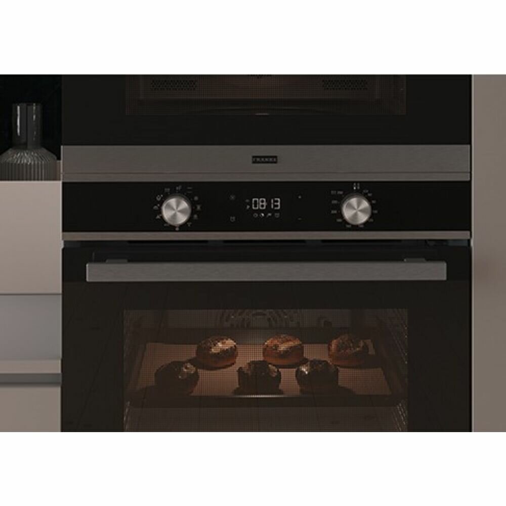 Количество режимов работы в духовом шкафу Франке: 11. В число доступных программ входят: классический нагрев, конвекция, гриль для создания хрустящей корочки, и другие. Тип гриля в этой модели — электрический. Особенности дизайна и внешней панели управления — также важный пункт при выборе духовки на кухню. В данной модели нужно обратить внимание на цвет — черное стекло / нержавеющая сталь, охлаждение двери, чтобы поверхность и мебель вокруг не нагревались. Электронная панель управления позволяет быстро разобраться в настройке программ и не требует чрезмерных усилий.