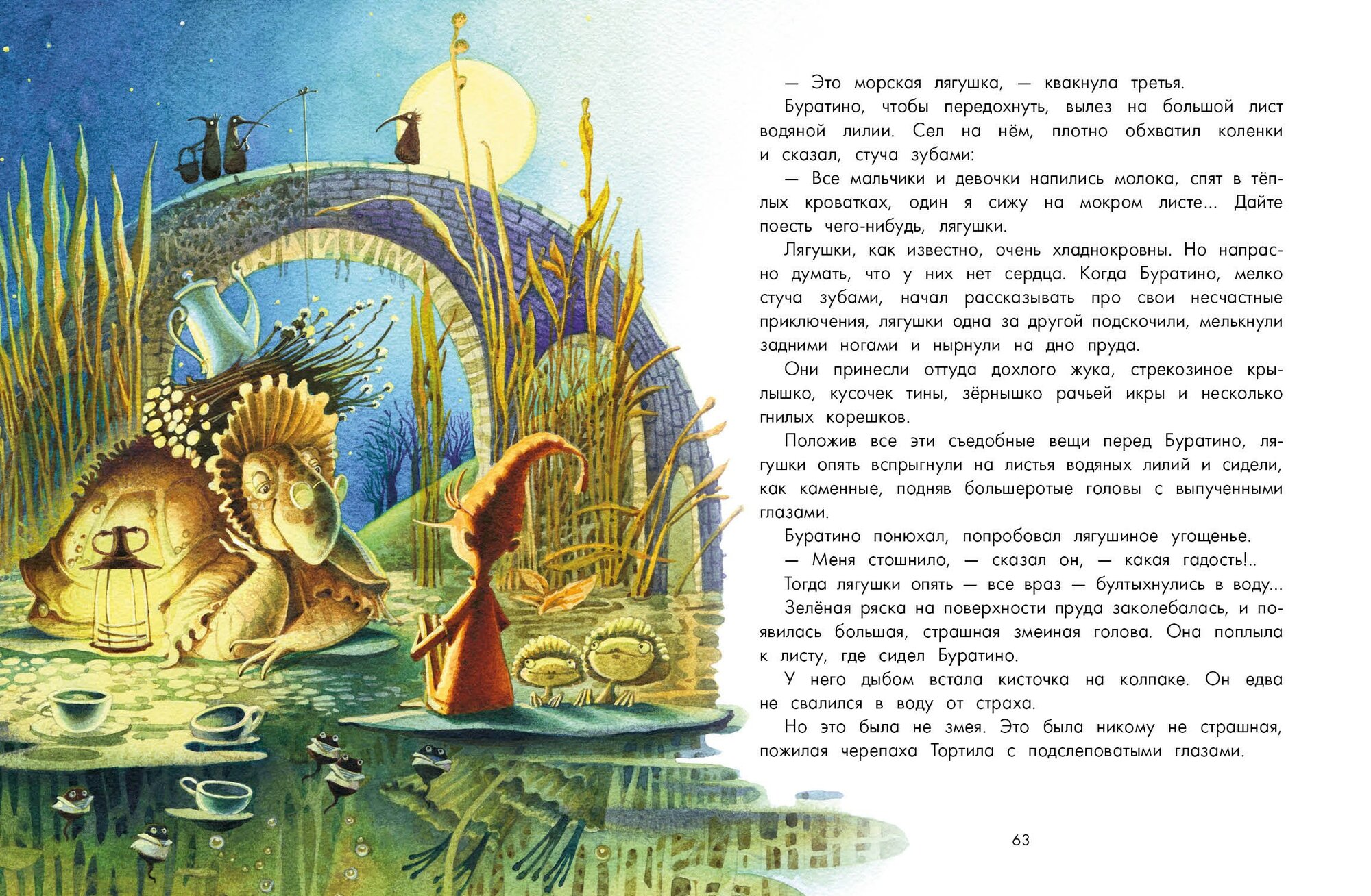 Но зато Буратино верный друг: терпит нотации Мальвины, спасает Пьеро и выслушивает старушку Тортилу. Которая расскажет ему о страшной тайне, спрятанной на дне пруда…