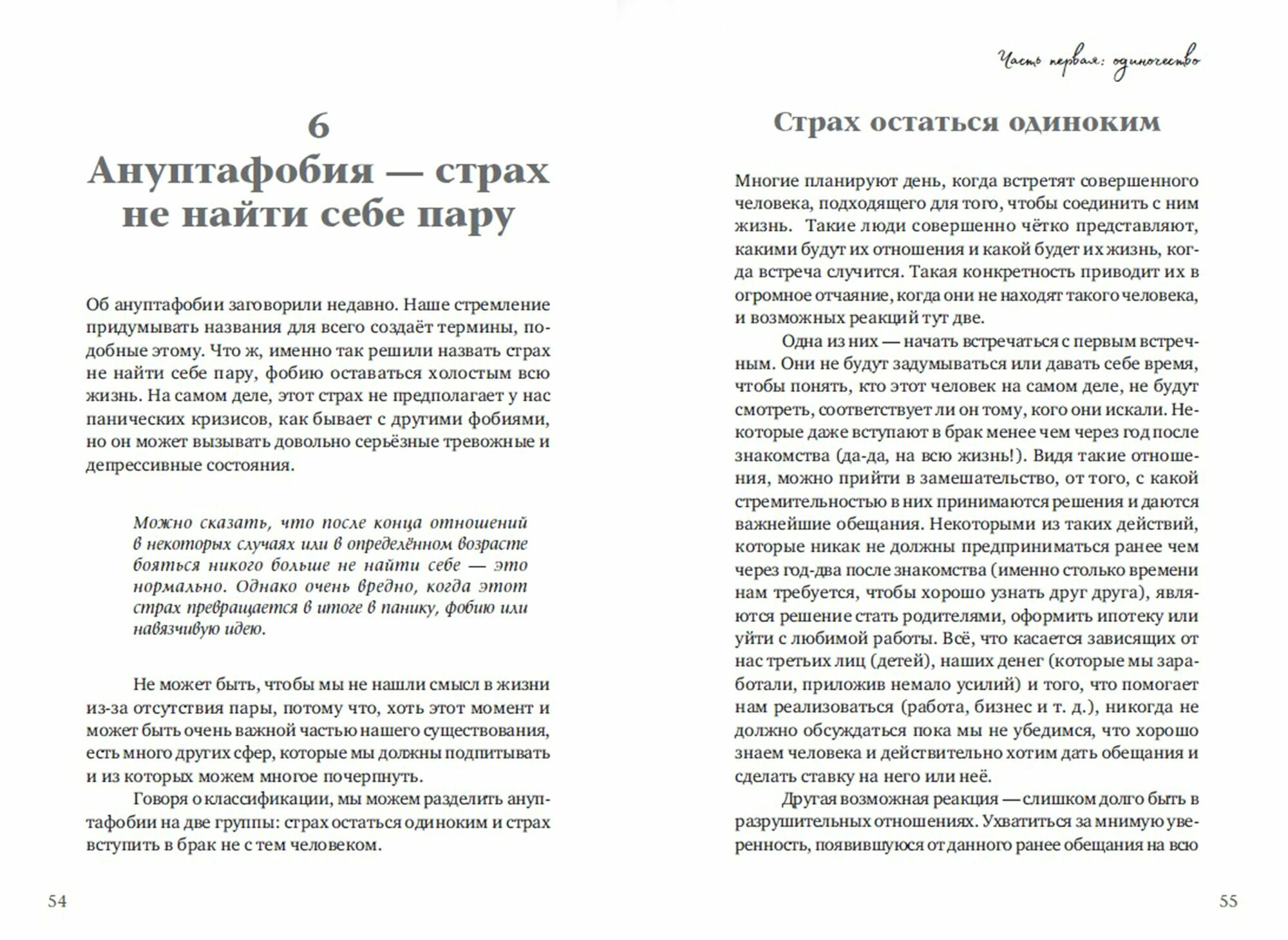 Прекрасная книга во всех смыслах. Твёрдая обложка, качественная плотная бумага, чёткая печать и хороший шрифт. Автор книги — действующий психолог, что подтверждается примерами из практики — рассказывает о своём опыте одиночества и формулирует мысли, которые кому-то могут показаться тривиальными, однако, всё гениальное — просто. Иногда, чтобы осознать и понять/принять мысль, её нужно несколько раз прочесть в разных источниках. Автор очень доступно всё излагает, и чувствуется её заботливое отношение к читателю. В конце книги есть приложение с практическими упражнениями по визуализации эмоций. Также стоит отметить высокое качество перевода — нет ощущения чтения переводной книги. Всем, кто одинок сейчас или часто оказывается в этом состоянии, очень рекомендую.