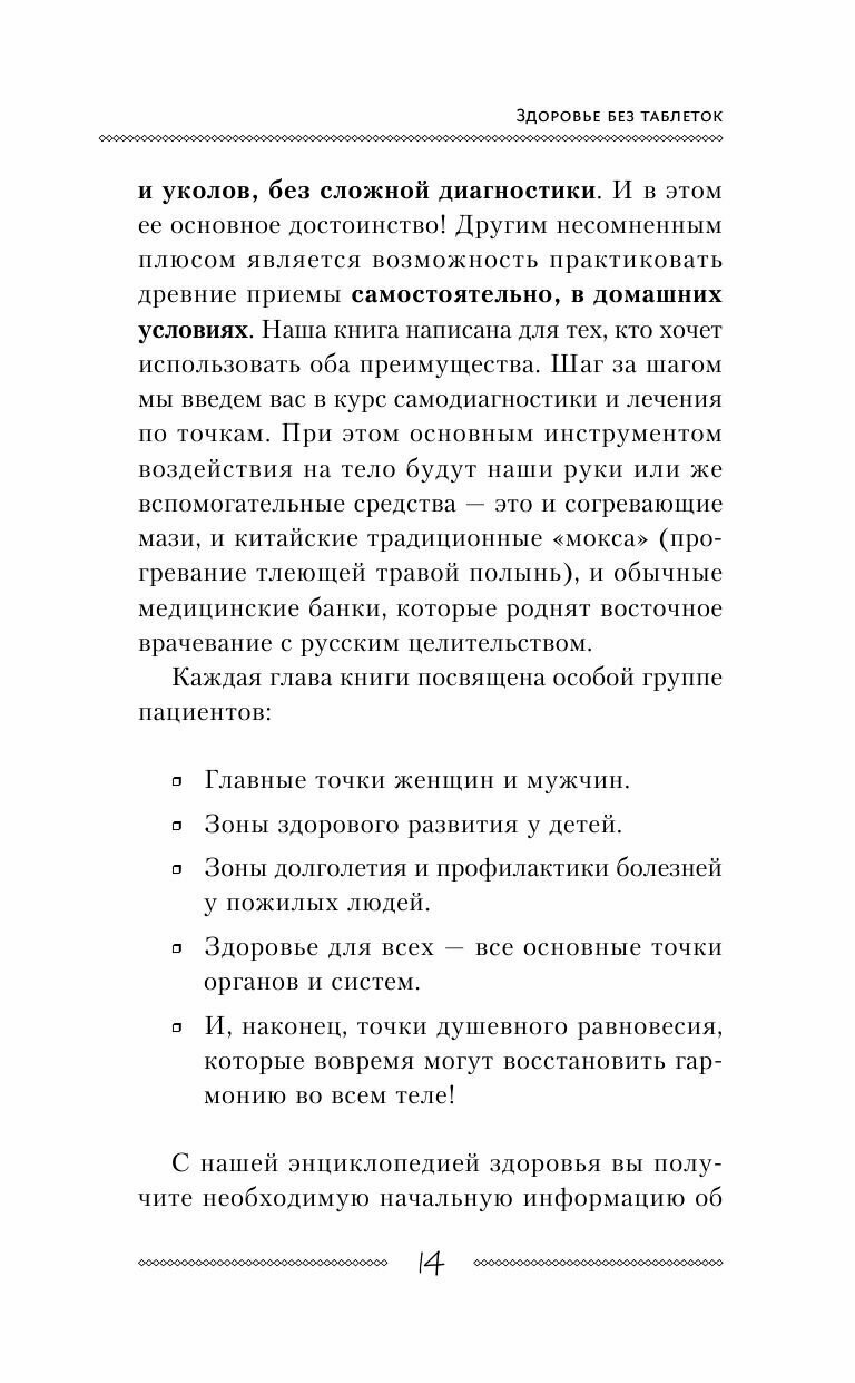 Точечный массаж - это здорово, но как найти ту самую заветную точку? Купила книгу и не разочаровалась: иллюстрации подробные, точек приведено много, описания понятные. Есть также сведения о диагностике заболеваний по внешним признакам: цвет лица и проч. Шрифт довольно крупный, информации много, книга вполне заслуживает твердой обложки, но увы. Всем, кто верит в восточную медицину, рекомендую.