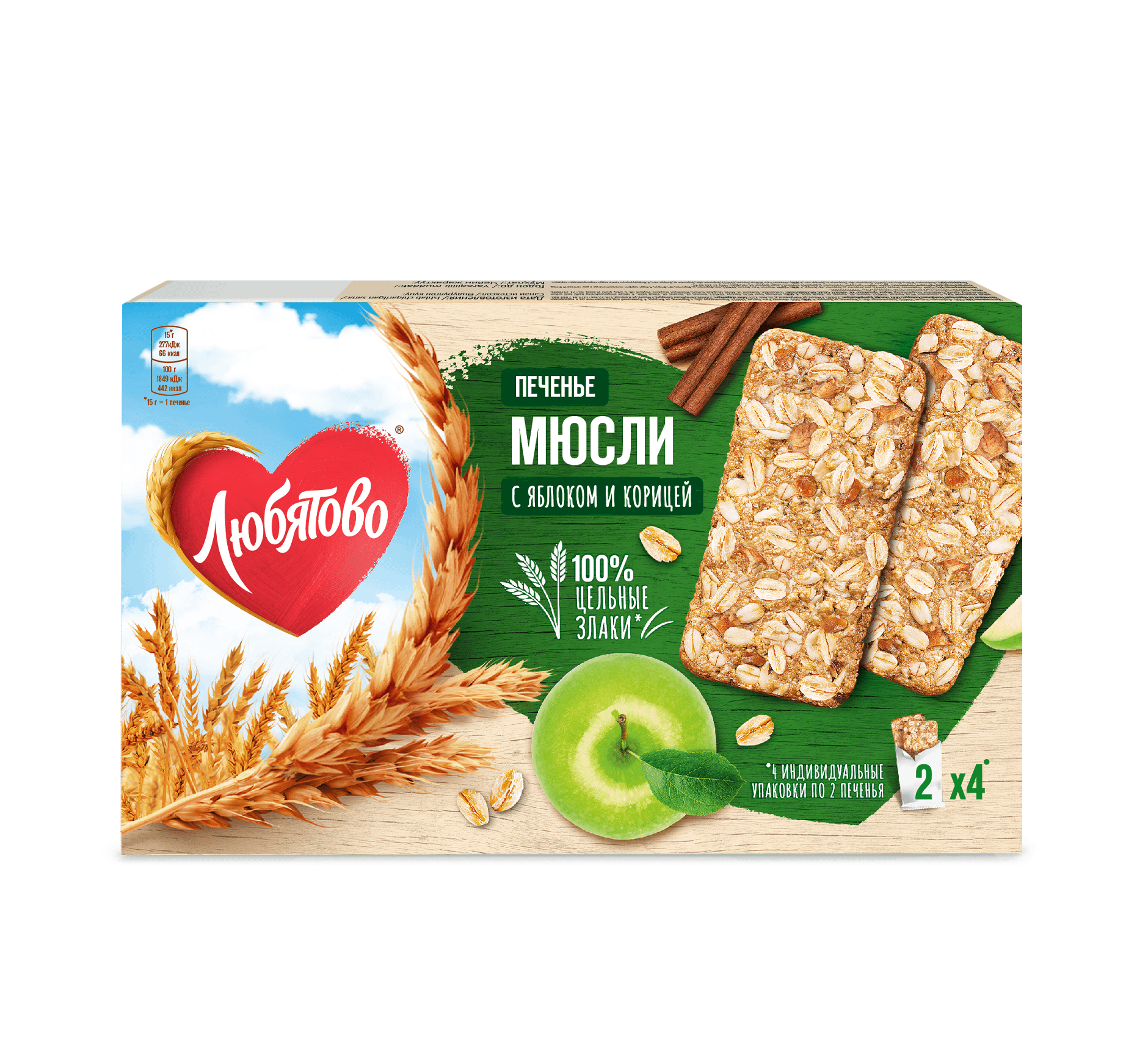 Печенье Любятово Мюсли злаковое с яблоком и корицей 120г Утконос