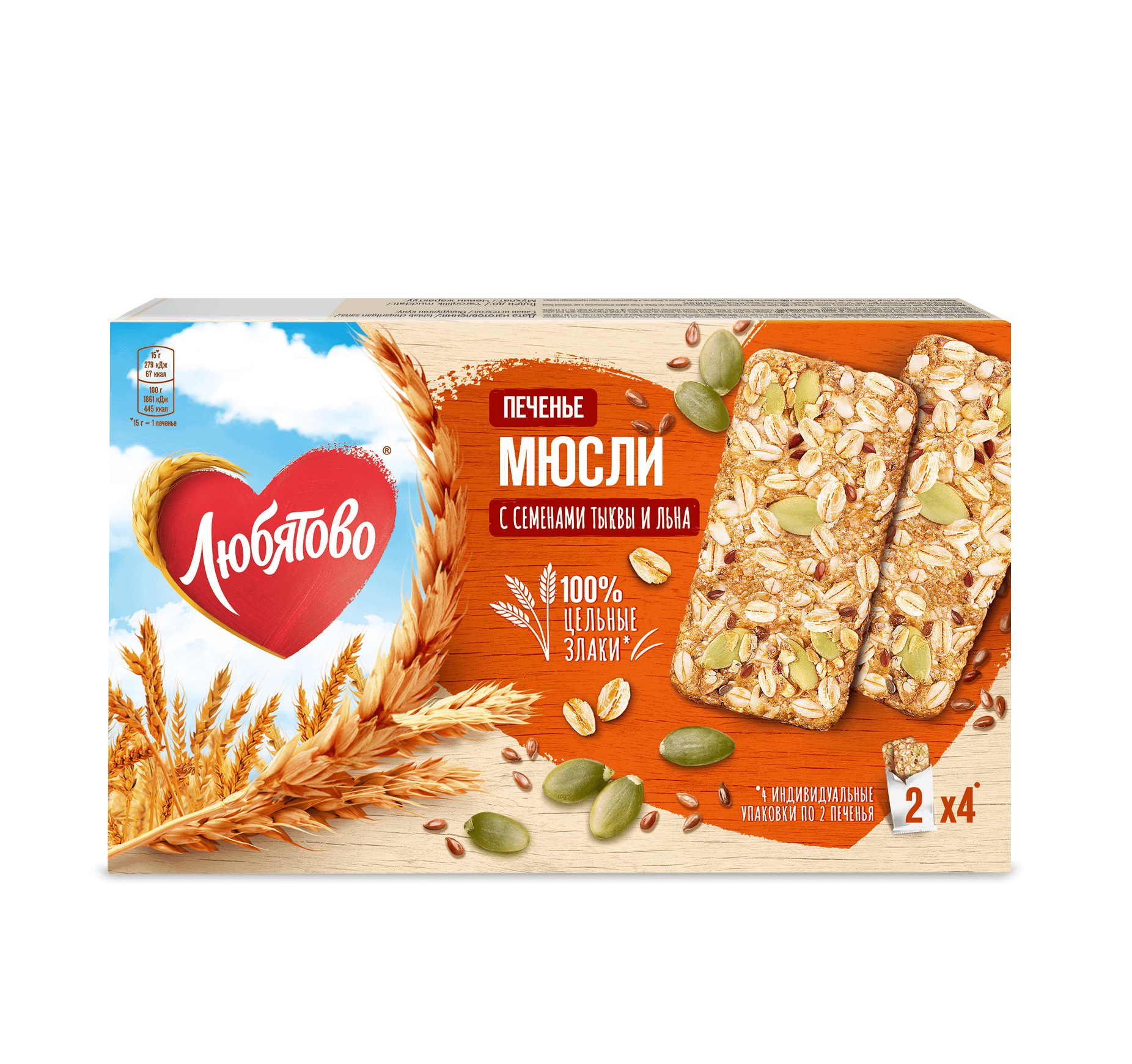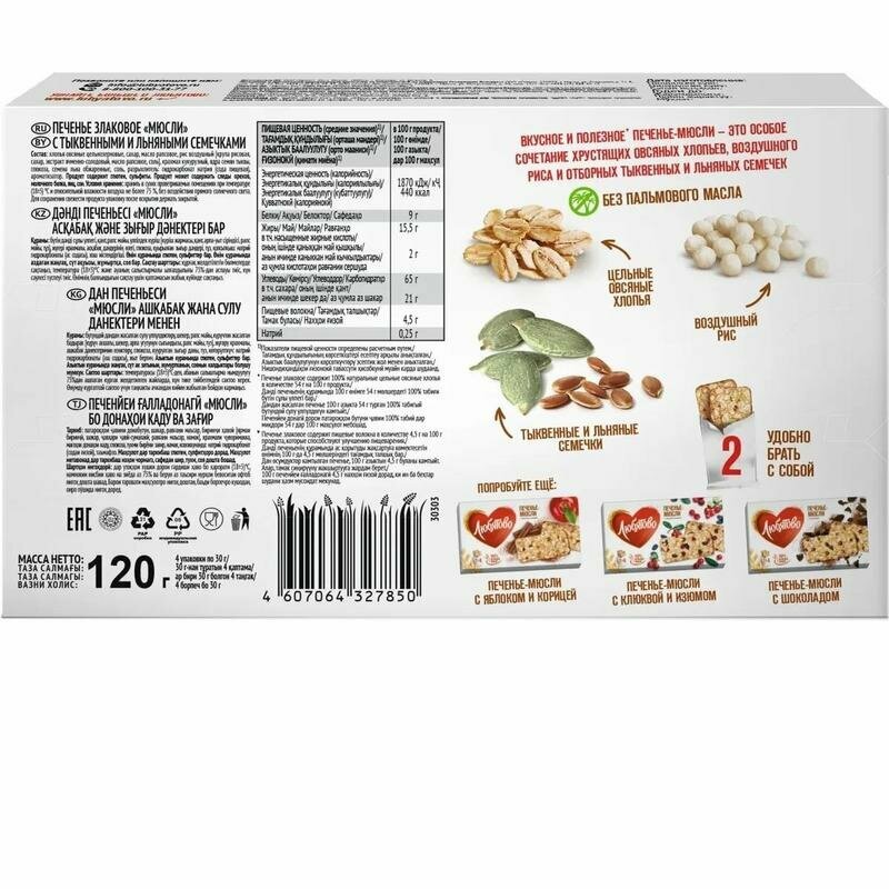Печенье Любятово Мюсли злаковое с тыквенными и льняными семечками 120г Келлогг Рус