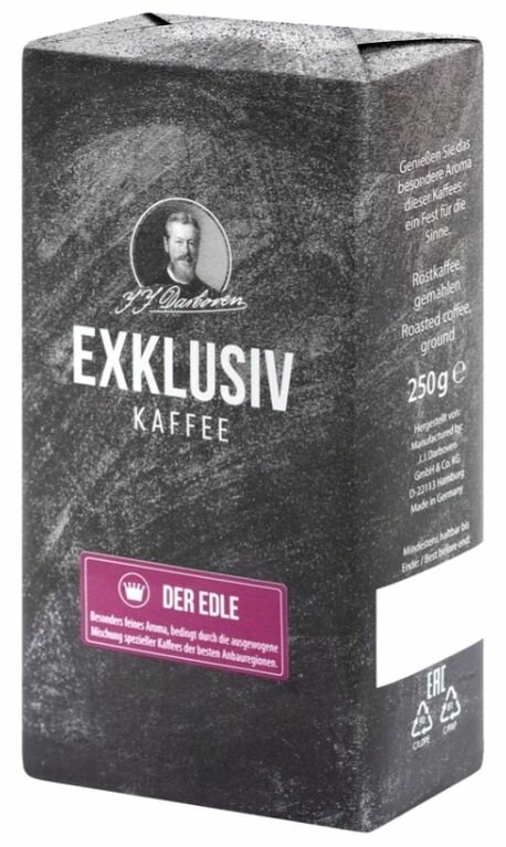 Молотый кофе J. J. Darboven Exklusivkaffee der Edle (Эксклюзив кафэ дер Эдле), 250 гр. - произведенный в Германии, эксклюзивный и насыщенный. Союз наиболее благородных, восточно-африканских высших сортов кофе средней обжарки из гор Центральной и Южной Америки, а именно из Коста-Рики и Гватемалы. Обладает мягким, приятным вкусом и роскошным ароматом. Восхищает характерная для Арабики кислинка в Der Edle, его дивный аромат, никого не оставят равнодушным. Этот неподражаемый кофе станет превосходным дополнением вашего дня. Всего 6 грамм на чашку зарядят бодростью и придадут сил в работе!