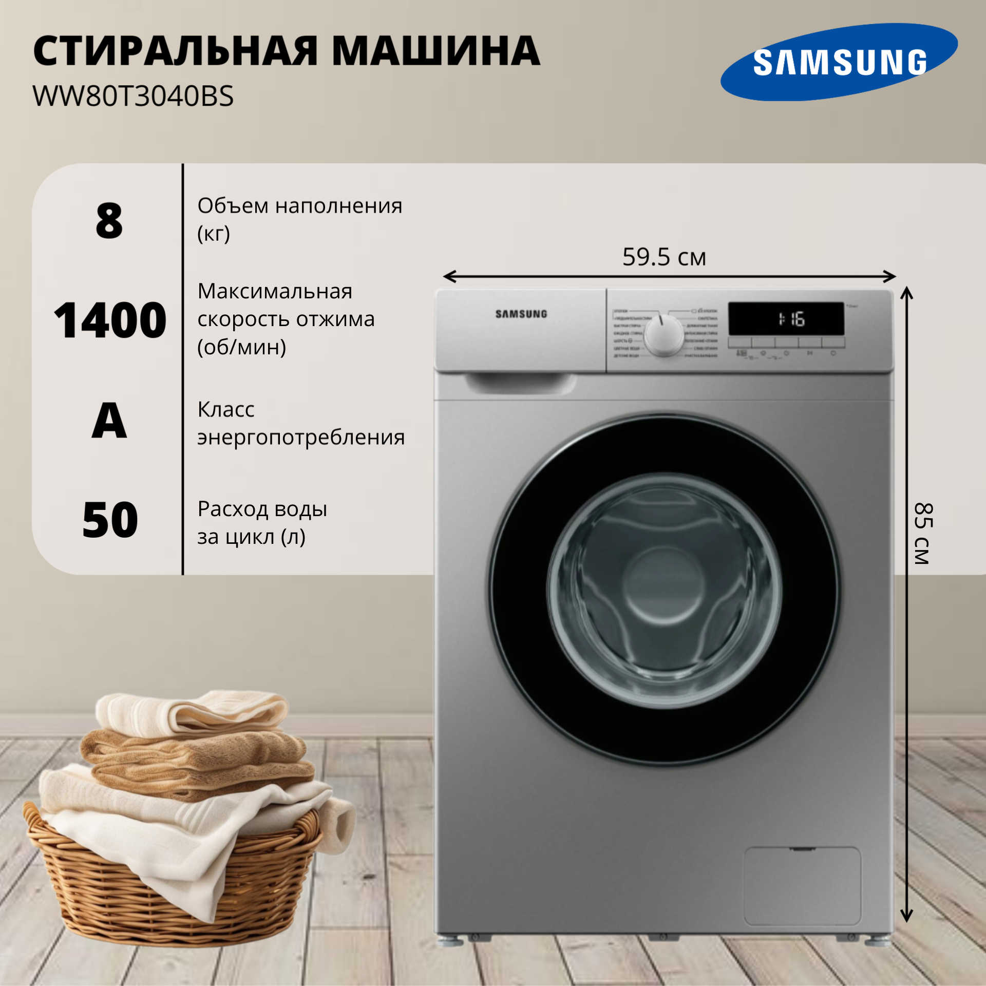 Сервис сравнения цен СкидкаГИД предлагает сравнить цены на товар «Стиральная машина узкая Samsung WW80T3040BS»
