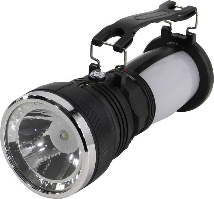 Переносной фонарь с 2-мя режимами работы. Подзаряжается от сети 110 - 220 вольт. Имеет разъем USB для подзарядки гаджетов и небольшую солнечную панель на 0.55 Вт с 17% конвертацией.