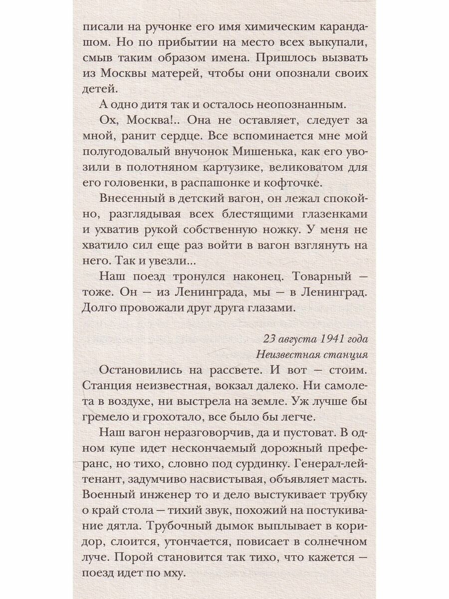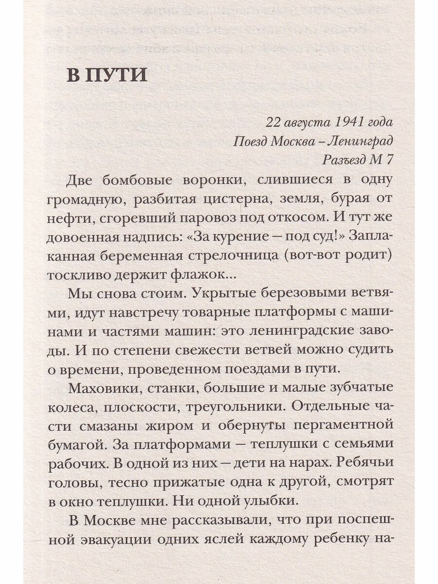 Прекрасная книга, заставляет погрузиться и прочувствовать весь ужас и всю мощь русского народа. Цитата: "Есть мужество, которое нарушает все каноны жизни и смерти. Можно смело сказать, что Ленинград питается преимущественно ненавистью к врагу. И этим живет“ Характеризует книгу. Написано жизненно, про́сто и от этого ещё страшнее