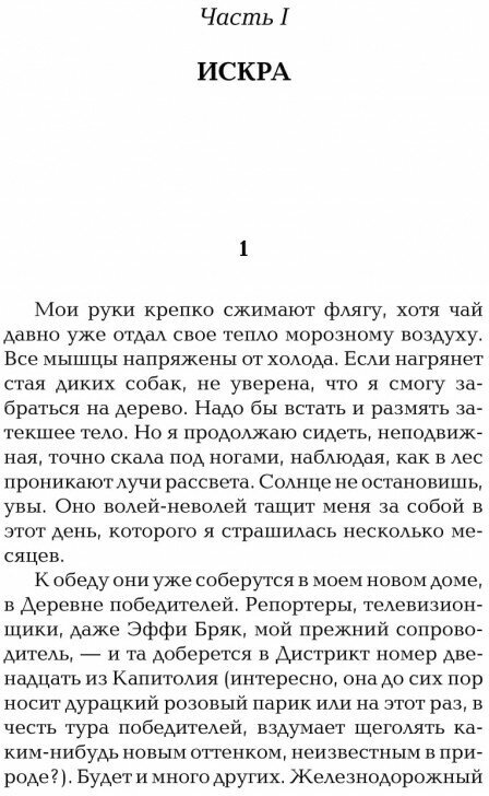 Само произведение по сюжету похоже на первую часть - арена, много второстепенных героев, в которых путалась, так как не стремилась запоминать, зная что вряд ли они выживут. Но как и в первой части один из таких зацепил. Читается легко, книга интересная, но это young adult, так что философии и глубины тут нет. Книга всё равно понравилась