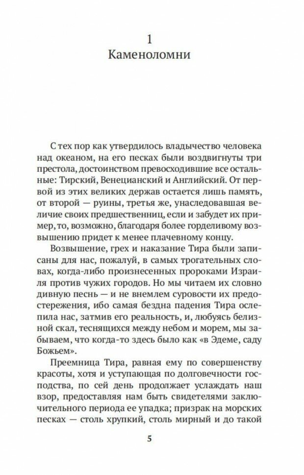 Монументальный трактат «Камни Венеции» был опубликован Джоном Рёскином в 1851–1853 г., явив собой логическое продолжение его знаменитого эссе «Семь светочей архитектуры». На благодатном материале памятников Венеции автор с присущим ему энтузиазмом исследует и анализирует архитектурное наследие разных эпох — от сокровищ византийского наследия до творений зодчих Ренессанса, равно увлеченно вглядываясь в детали фасадов и рассуждая о масштабных исторических процессах.