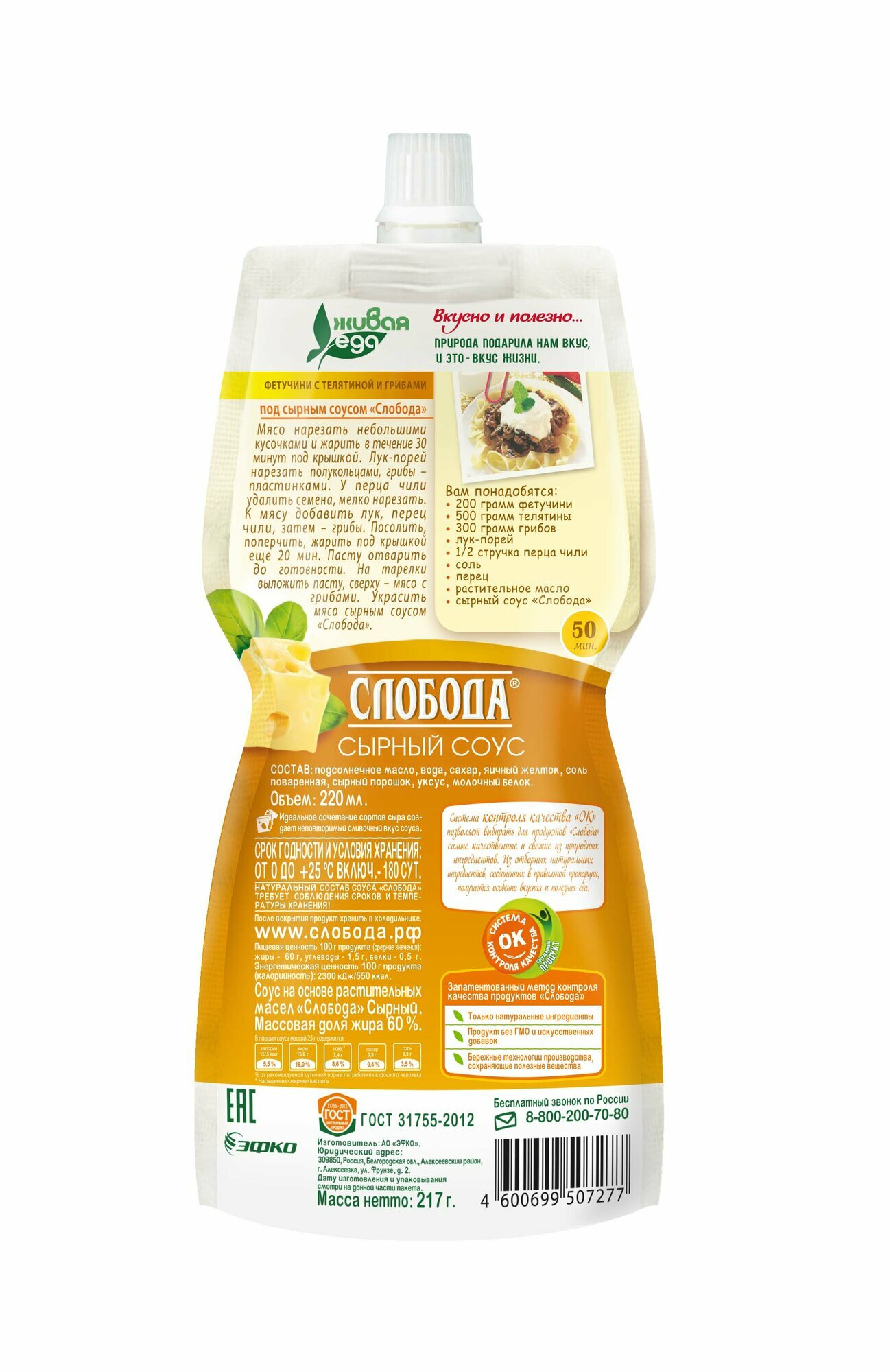 Соус Слобода Сырный 220мл Эфко