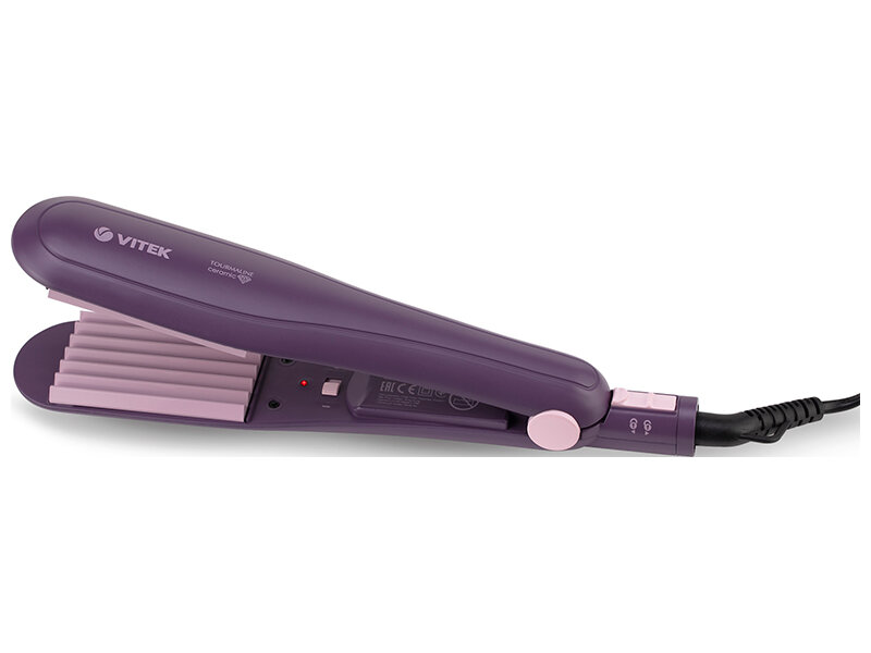 Электрощипцы-гофре VITEK незаменимы, если нужно создать дополнительный прикорневой объем или необычную укладку. Широкие гофрированные пластины не только создадут необходимую фактуру, но и защитят волосы во время укладки — покрытие пластин с технологией Tourmaline ceramic не допустит пересушивания волос благодаря равномерному распределению температуры по всей их поверхности.