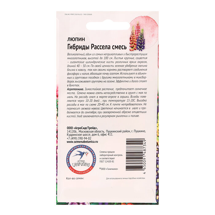Люпин семена Октябрина Ганичкина »