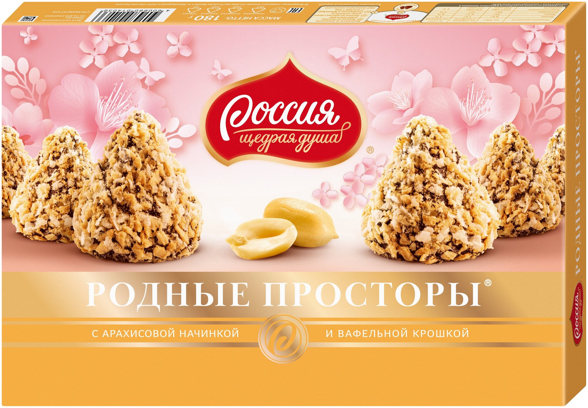 Конфеты Родные просторы с арахисом 180г Утконос Конфеты Россия Щедрая душа Родные Просторы с вафельной крошкой 180 г