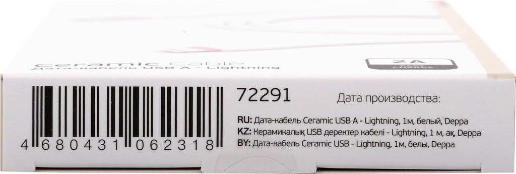 Кабель Ceramic USB 2.0 - 8pin для Apple 2A (white) Deppa Ceramic USB (m)-Lightning (m) 1м. (72291) белый