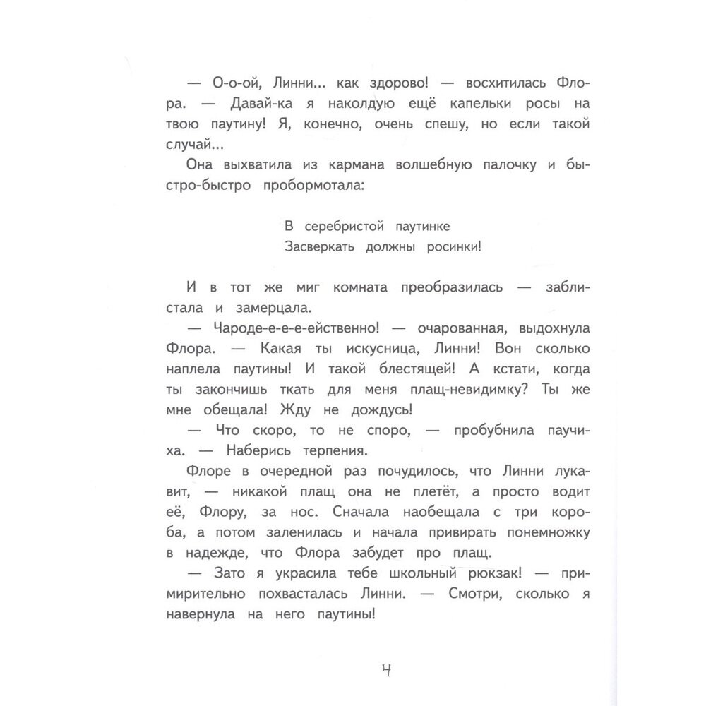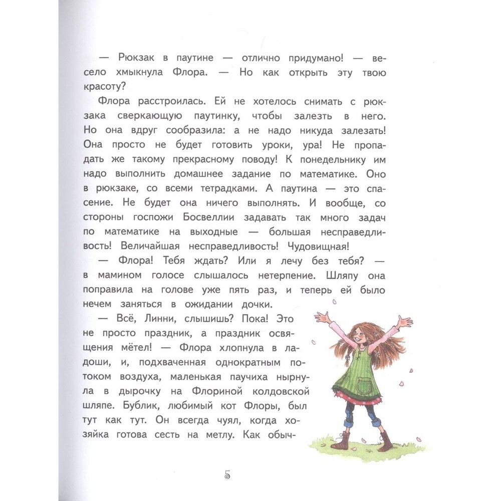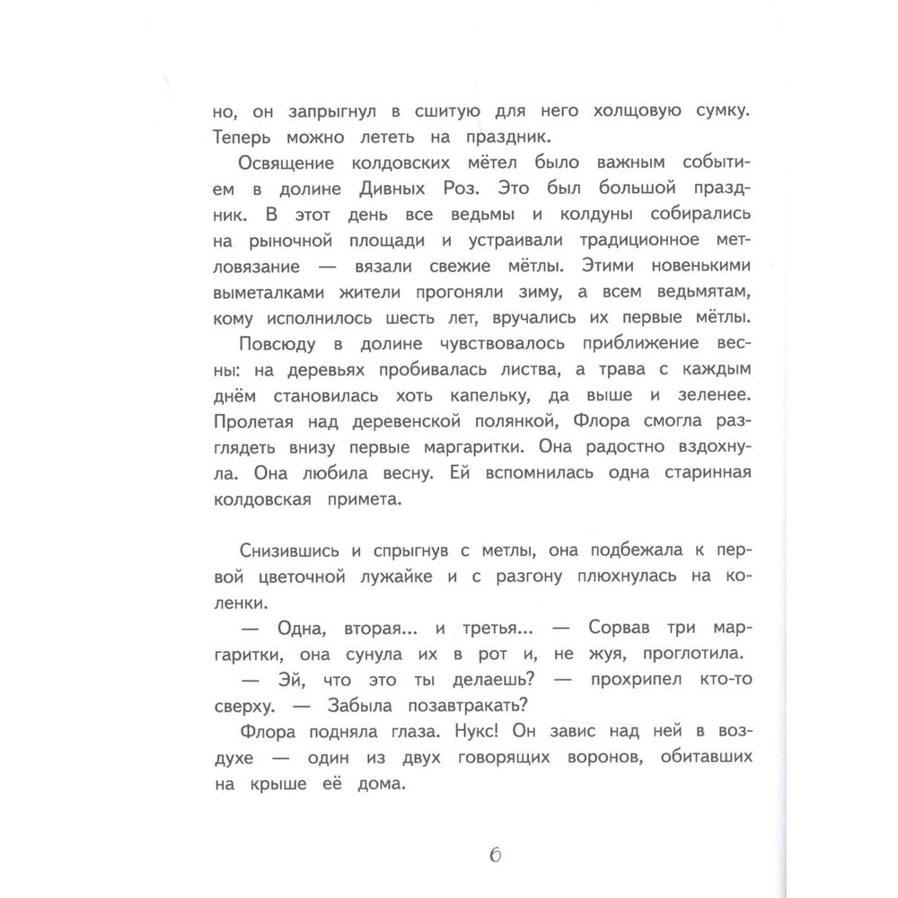 Для нас это уже 3я книга из серии про Ведьмочку флору. Дочка прочитала книгу с удовольствием, понравилась больше, чем Земляничная фея. Сюжет динамичный, есть смешные моменты. Подойдет для девочек от 5 лет, кто любит истории про волшебников. Текста достаточно много, картинки не на каждой странице, но читается легко. Качество печати хорошее: твёрдая обложка и белая бумага. Иллюстрации хорошие. Считаю книга не хуже книг про Изадору Мун, единственное шрифт помельче и объём побольше.