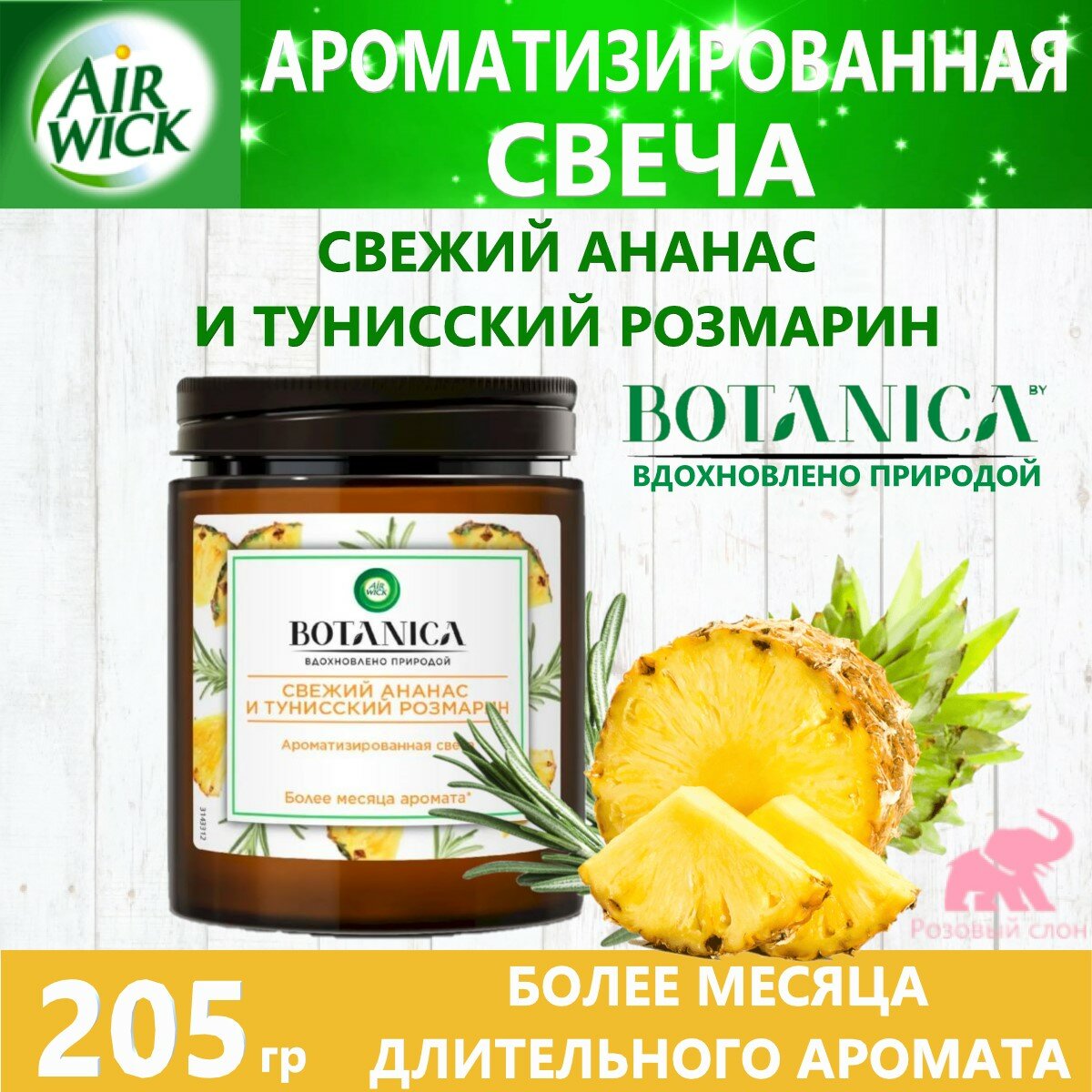 Сервис сравнения цен СкидкаГИД предлагает сравнить цены на товар «Свеча ароматизированная Air Wick Botanica Свежий ананас и тунисский розмарин 205г»