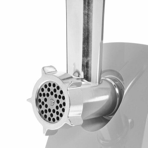 Модель обладает удобным кнопочным управлением, которое позволяет легко и быстро выбирать необходимые настройки. С этой электромясорубкой вы сможете приготовить фарш различной степени помола благодаря трём перфорированныем дискам, которые входят в комплект поставки.