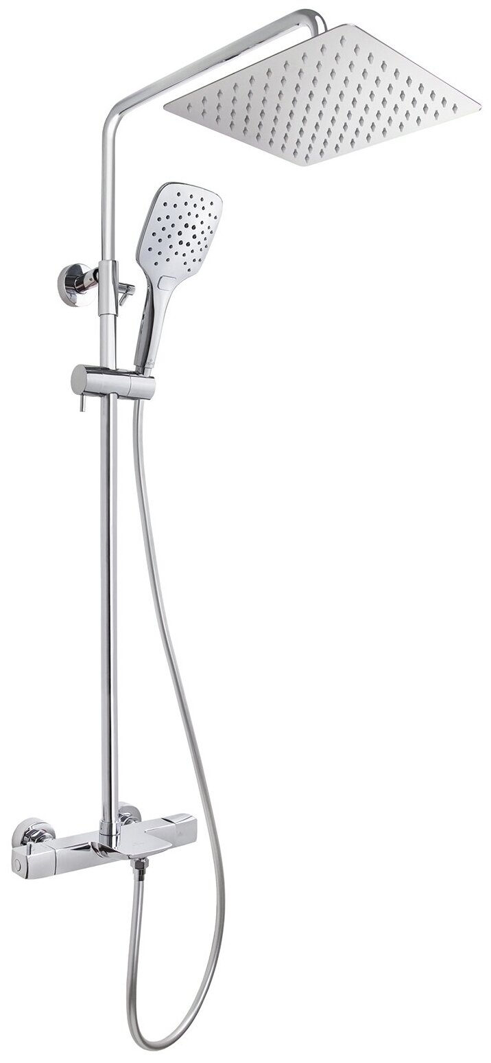 Хром. Душевая система Kaiser Cezar 05282 с термостатом - безупречный внешний вид и отличное качество по европейским стандартам. Идеально подойдет для любой ванной комнаты в современном стиле. Цвет: Хром. .Особенности:Защита от известковых отложений и легкий уход благодаря силиконовым форсункам.Технические характеристики:Термостатический смеситель из латуни.Душевая штанга из высокачественной латуни. Регулируется по высоте от 87,2 до 117,2 см.Верхний душ квадратной формы 24,6х24,6 см. Режим струи: Тропический дождь.Гибкий душевой шланг с удобной лейкой.Монтаж: на стену.Стандарт подводки: G 1/2, жесткая.В комплекте поставки: душевая система