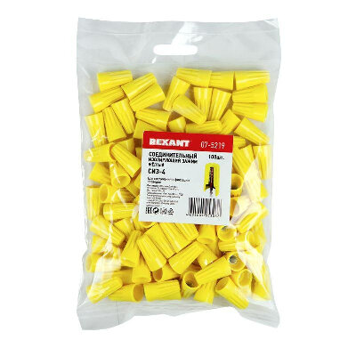 Соединительный изолирующий зажим желтый (1,5 до 9,5 мм?). Предназначен для соединения и фиксации в скрутке медных проводов.