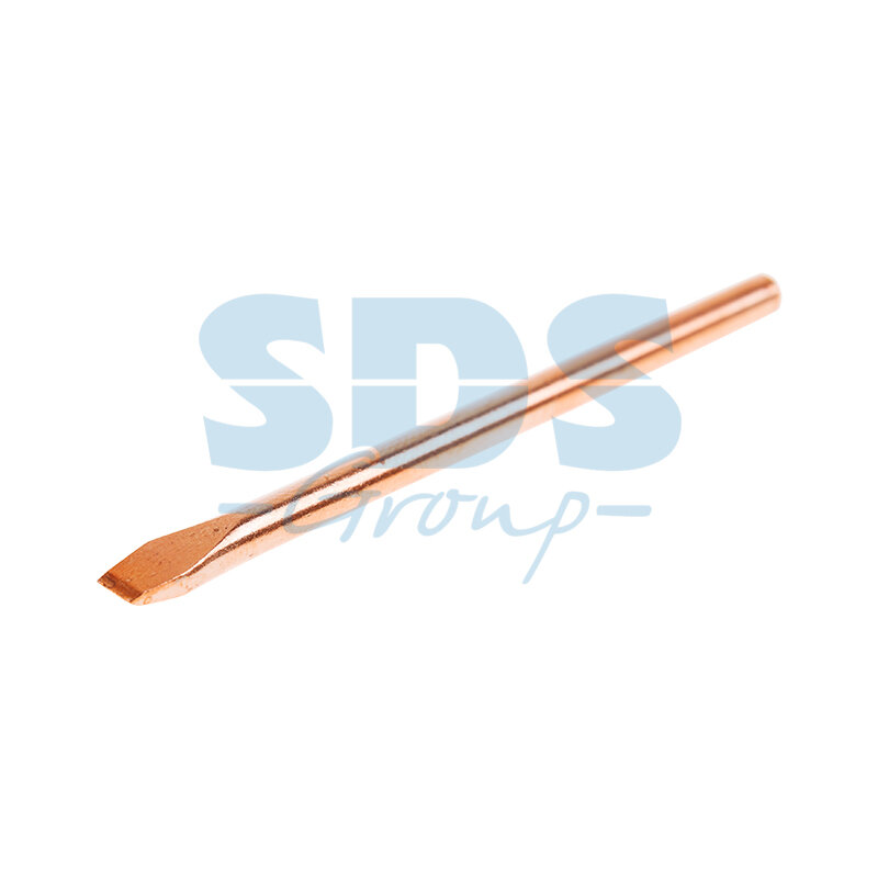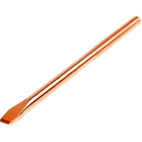 Жало медное представляет собой цилиндрический стержень, имеющий с одного конца один из множества типов форм. Медь — это идеальный материал для изготовления паяльного жала с точки зрения теплопроводности. Кроме этого, медное жало имеет отличную теплоемкость. Подавляющее большинство паяльников комплектуются именно такими наконечниками.
