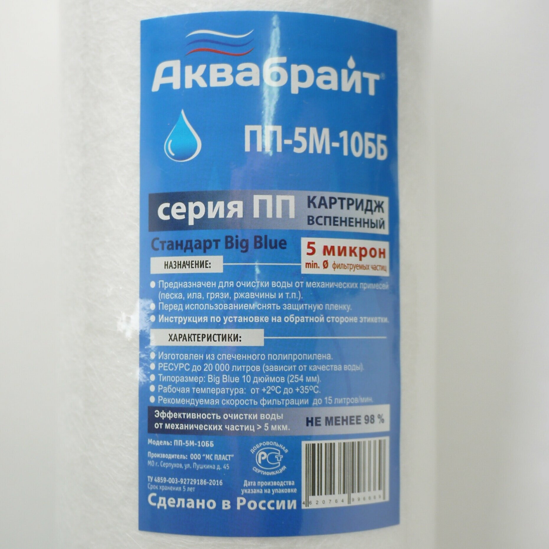 - Типоразмер Big Blue 10 дюймов (h - 254 мм ± 1 мм)