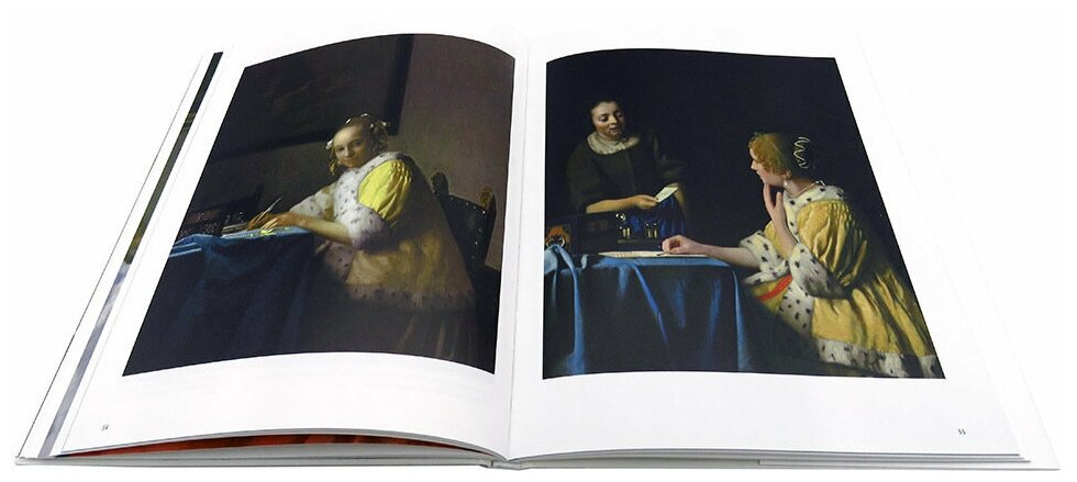 Расскажу об издании. Это нечто грандиозное! Отличные репродукции, видны и трещинки краски, и удары кисти. Много увеличенных фрагментов полотен. Книга выпущена ( возможно переиздана) в этом году, как я поняла из рекламного стикера в честь двадцатипятилетнего юбилея издательства. Отсюда и специальная цена, обычно альбомы Вермеера оцениваются дороже.