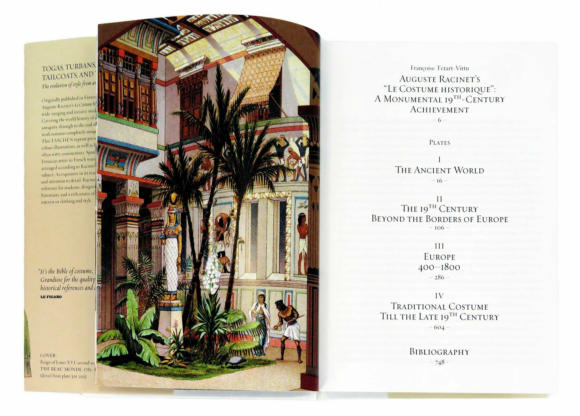 Originally published in France between 1876 and 1888, Auguste Racinet's Le Costume historique was the most wide-ranging and incisive study of clothing ever attempted. Covering the world history of costume, dress, and style from antiquity through to the end of the 19th century, the six volume Work remains completely unique in its scope and detail. TASCHEN's complete reprint presents Racinet's exquisitely precise and colored illustrations, as well as his delightful descriptions and often witty comments. Spanning everything from ancient Etruscan attire to French women's couture, material is arranged according to Racinet's orginal organization by culture and subject. As expansive in its reach as it is passionate in its research and attention to detail. The Complete Costume History is an invaluable reference for students, designers, artists, illustrators, and historians;