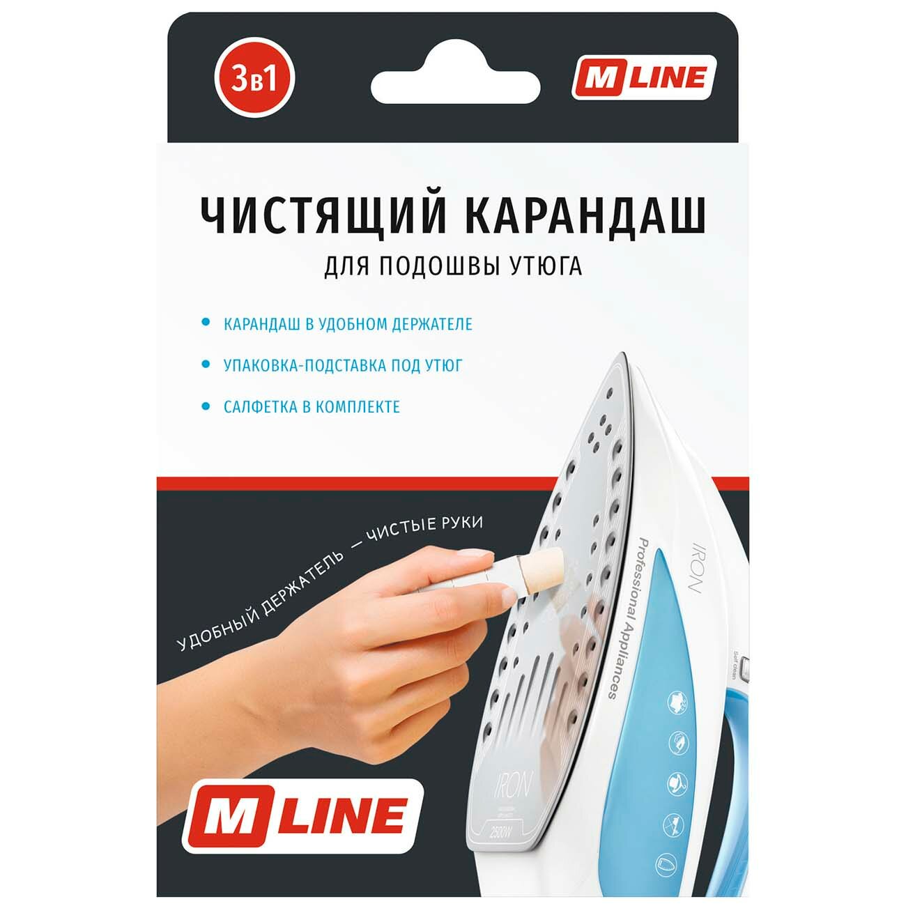 Чистящий карандаш WiMAX поможет вам быстро убрать с подошвы утюга накипь, нагар и прочие загрязнения. Упаковка выступает в роли практичной подставки для фиксации прибора во время его обработки. просто И аккуратно Специальный держатель для аксессуара сохранит ваши руки чистыми и позволит максимально удобно нанести средство. В составе карандаша нет абразивных веществ, которые могут повредить поверхность утюга. В комплекте поставляется салфетка, с помощью которой можно удалить остатки вещества с подошвы.